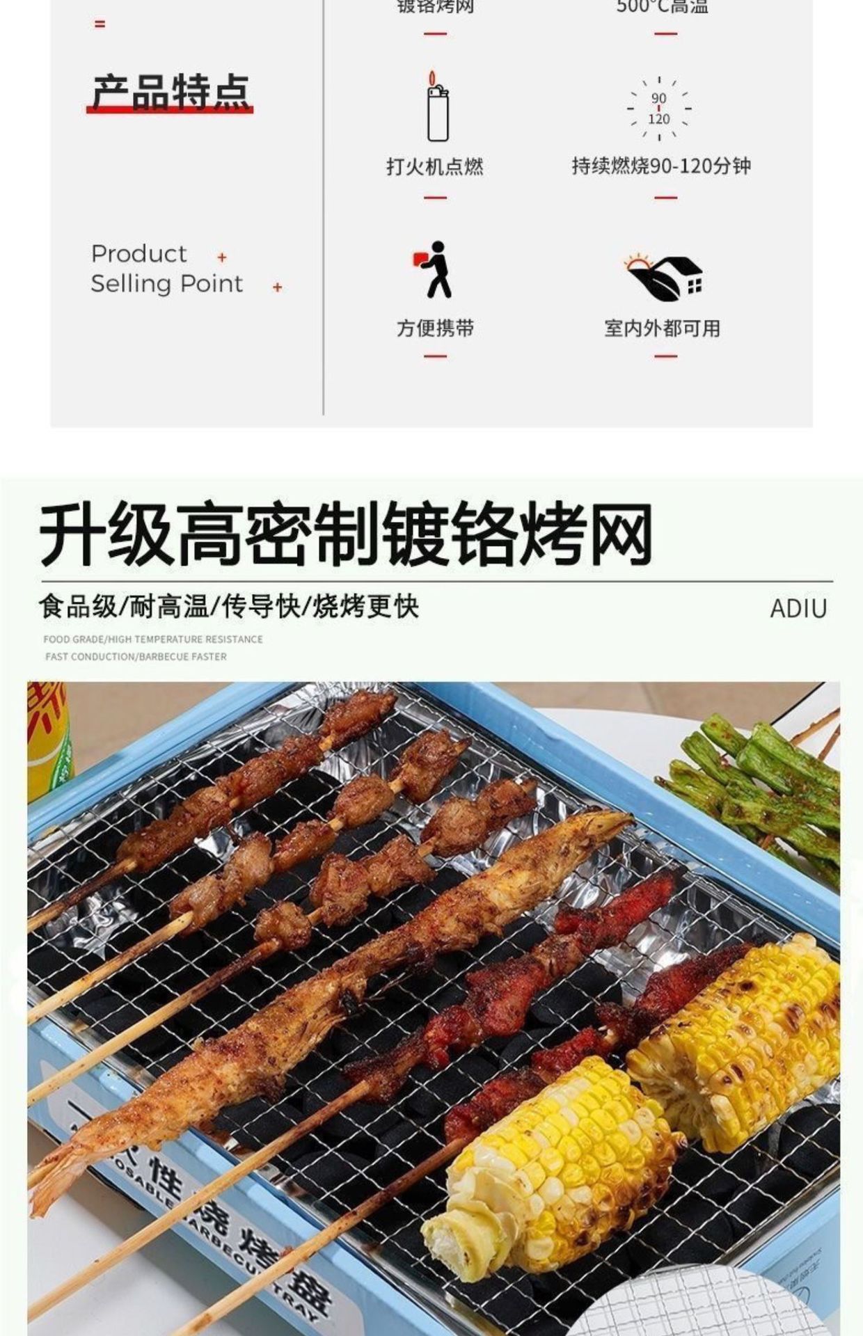 야외 캠핑 일회용 바베큐 오븐 꼬치 가정용 실내 바베큐 그릴 도구 용품 작은 그릴스토어 가기