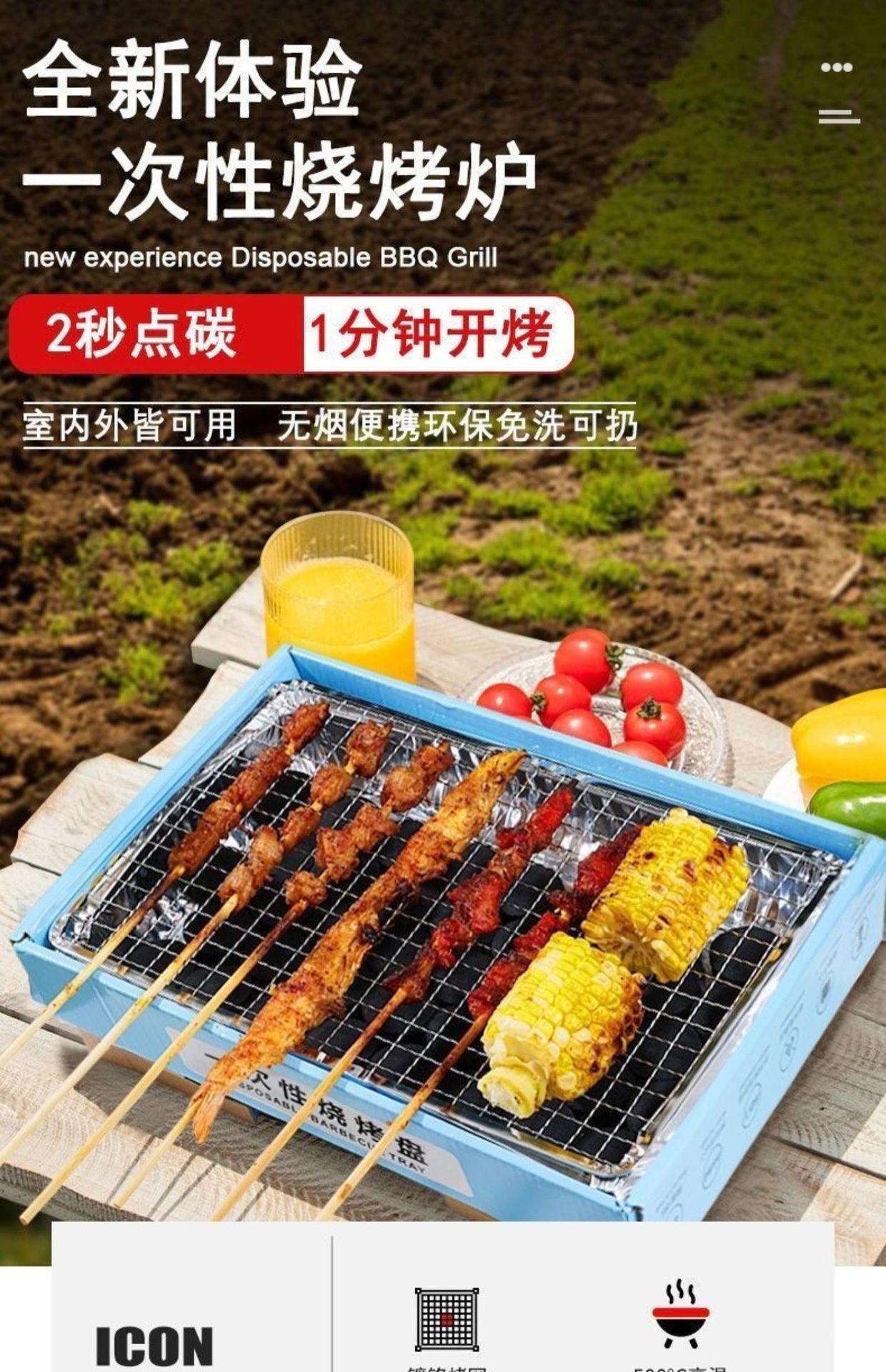 야외 캠핑 일회용 바베큐 오븐 꼬치 가정용 실내 바베큐 그릴 도구 용품 작은 그릴