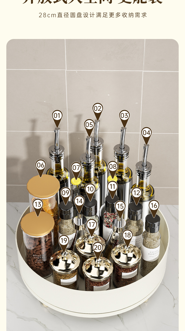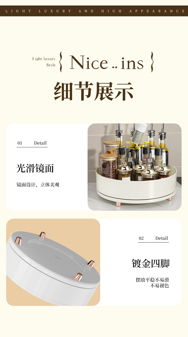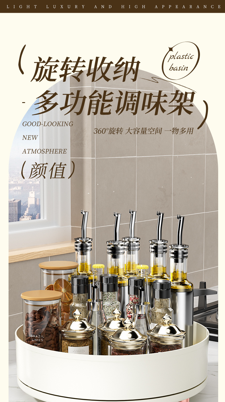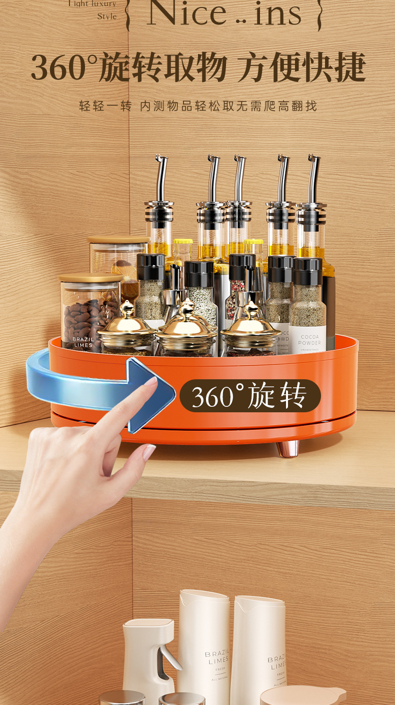 회전 조미료 트레이 라이트 럭셔리 주방 조리대 다기능 조미료 병 조미료 항아리 보관 랙 화장품 보관 트레이