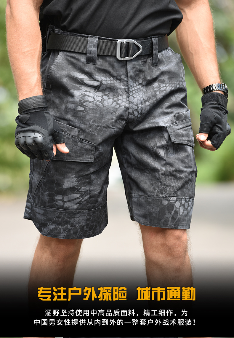 Hanye 야외 도매 슬림 전술 반바지 남자 여름 야외 탄성 통기성 멀티 백 작업 바지스토어 가기