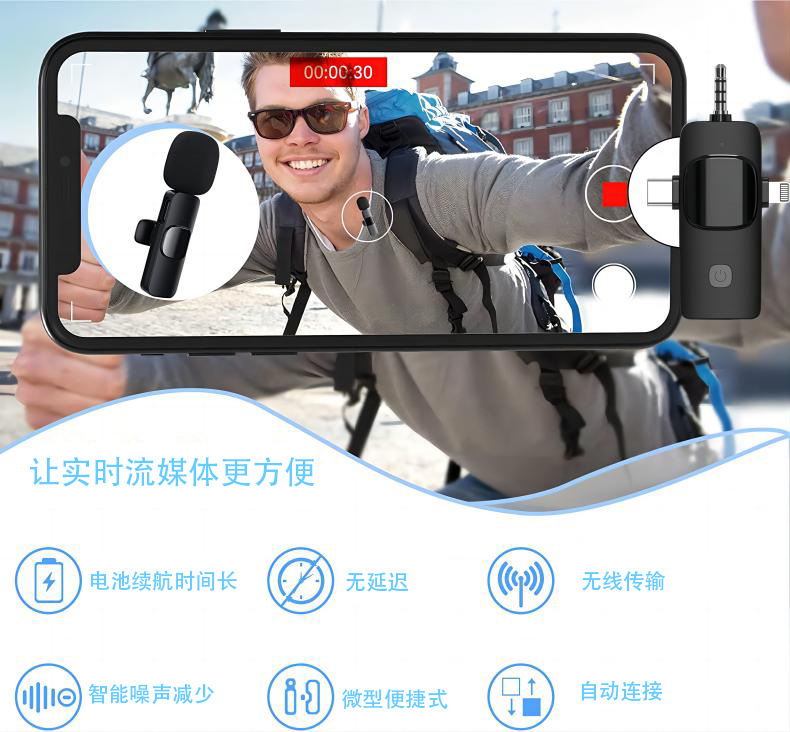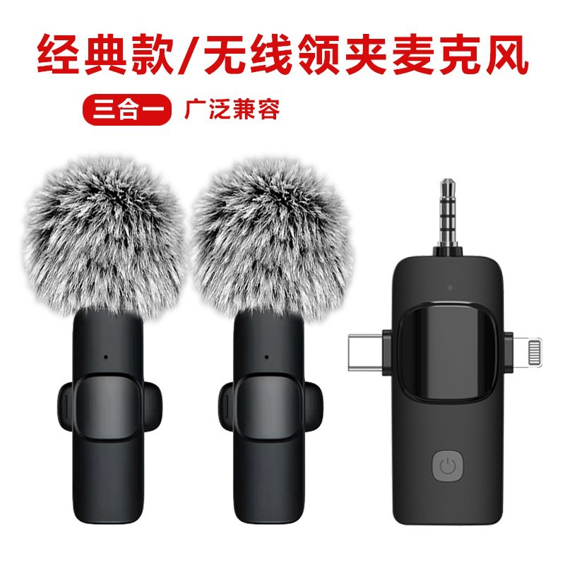 크로스보더 신형 쓰리인원 인터페이스 무선 칼라 클립 마이크 라이브 노이즈 감소 라디오 마이크 증폭 마이크스토어 가기