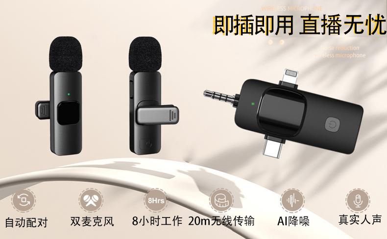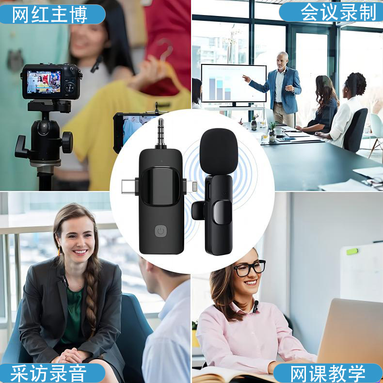 크로스보더 신형 쓰리인원 인터페이스 무선 칼라 클립 마이크 라이브 노이즈 감소 라디오 마이크 증폭 마이크