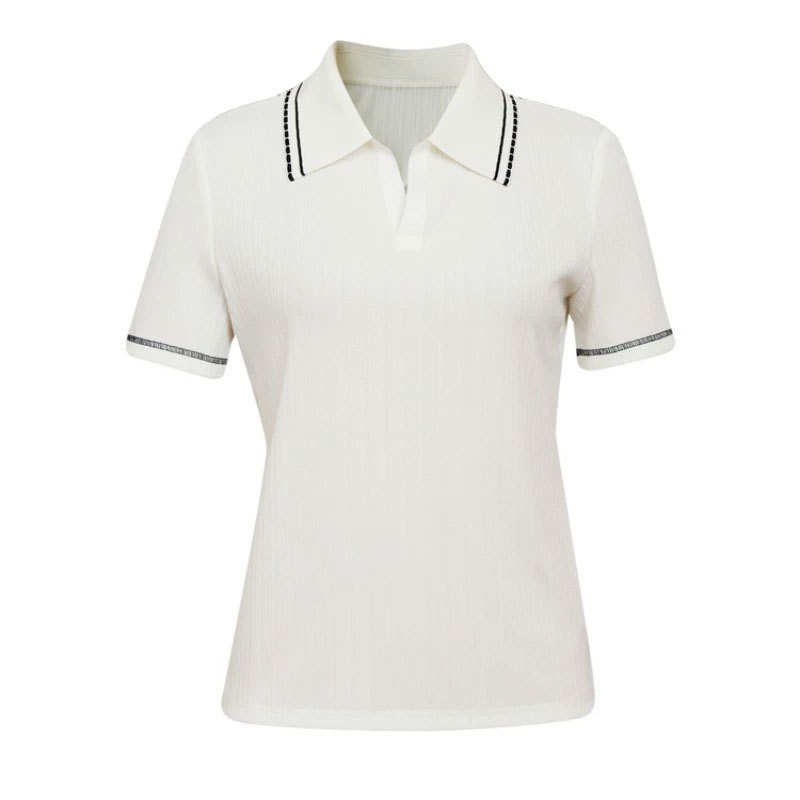 제가 새롭게 출시한 2024년 여성 여름 슬림핏 캐주얼 만능 니트 아이스 실크 라펠 반팔 폴로 셔츠 상의