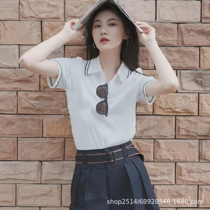 브라더스 뉴 2023 여성 여름 슬림핏 캐주얼 올매치 니트 아이스 실크 라펠 반팔 폴로 셔츠 탑