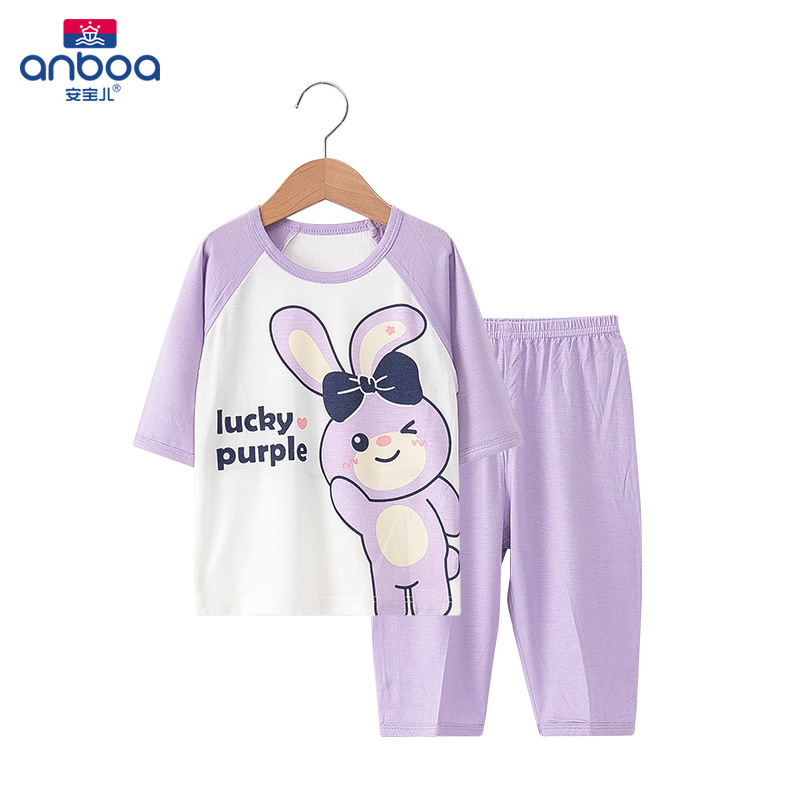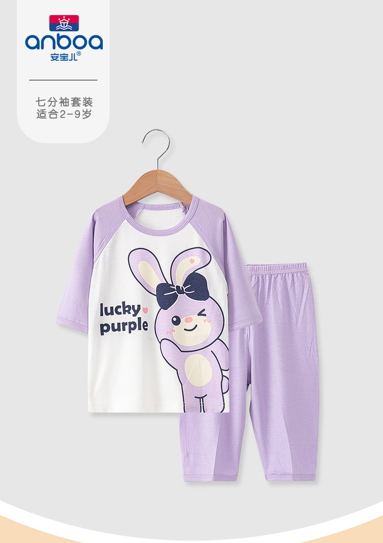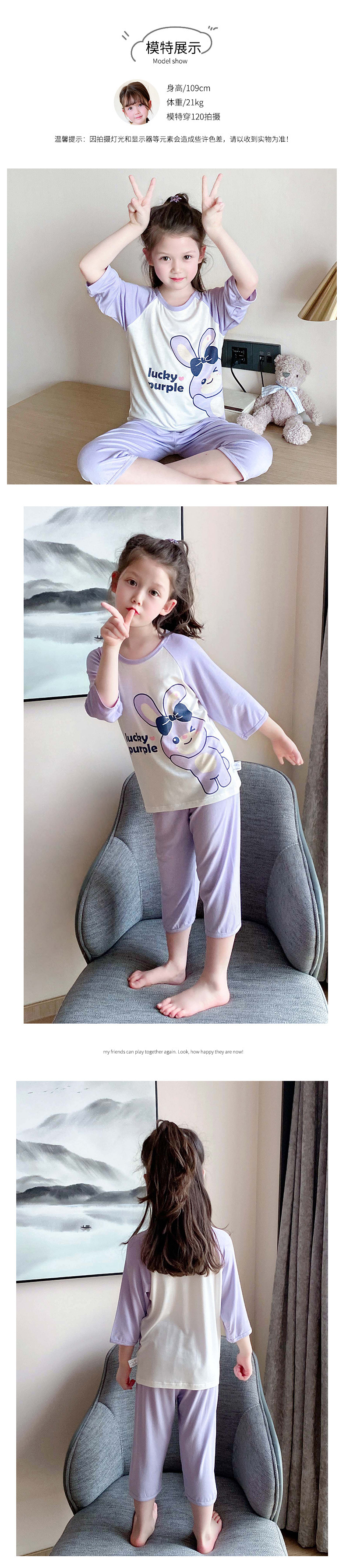 여자 여름 잠옷 어린이 7 점 소매 편안한 세트 소녀 아기 패션 귀여운 만화 가정 옷 얇은
