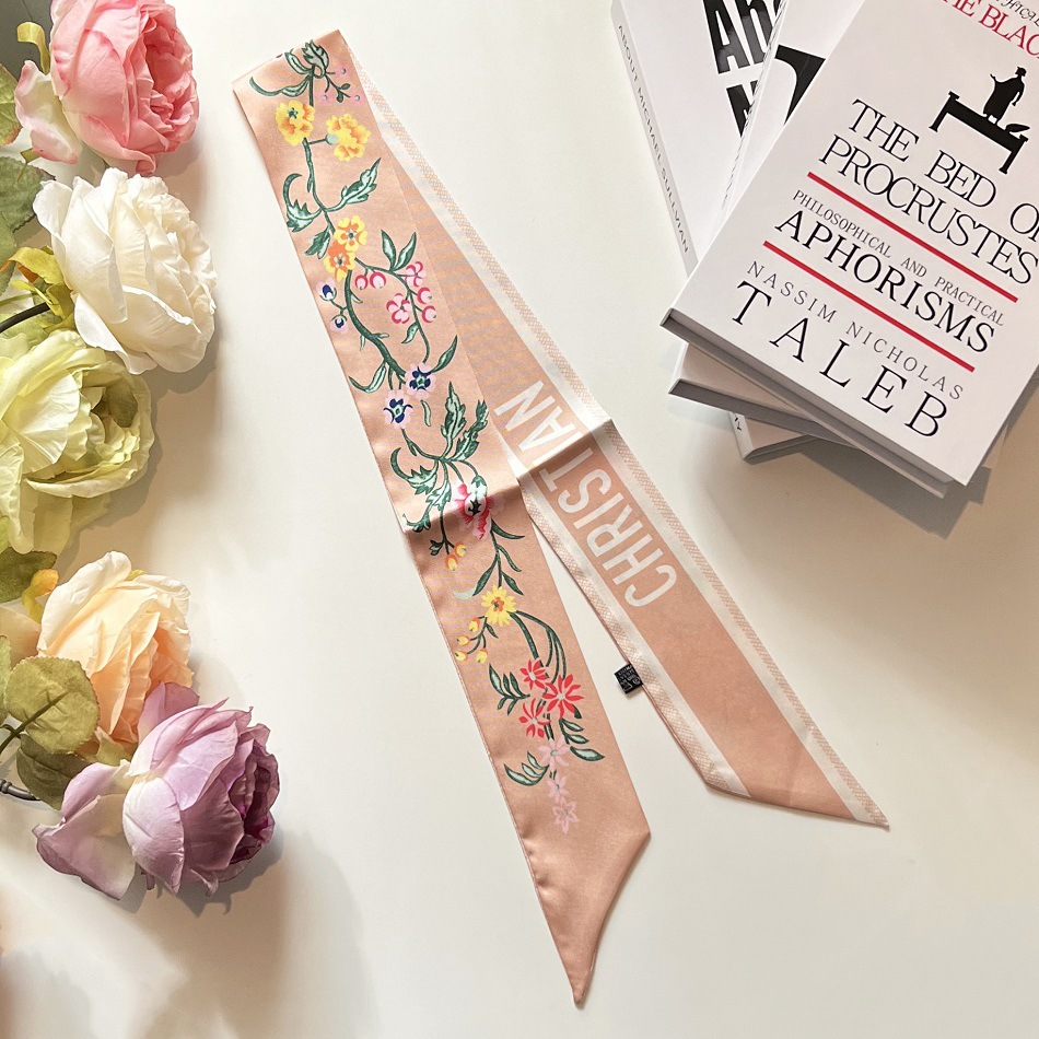 2023 신상품 식물 꽃 스카프 긴 리본 복고풍 프랑스 스타일 인터넷 연예인 같은 스타일 헤어 벨트 모든 매치 타이 벨트 실크 스카프스토어 가기