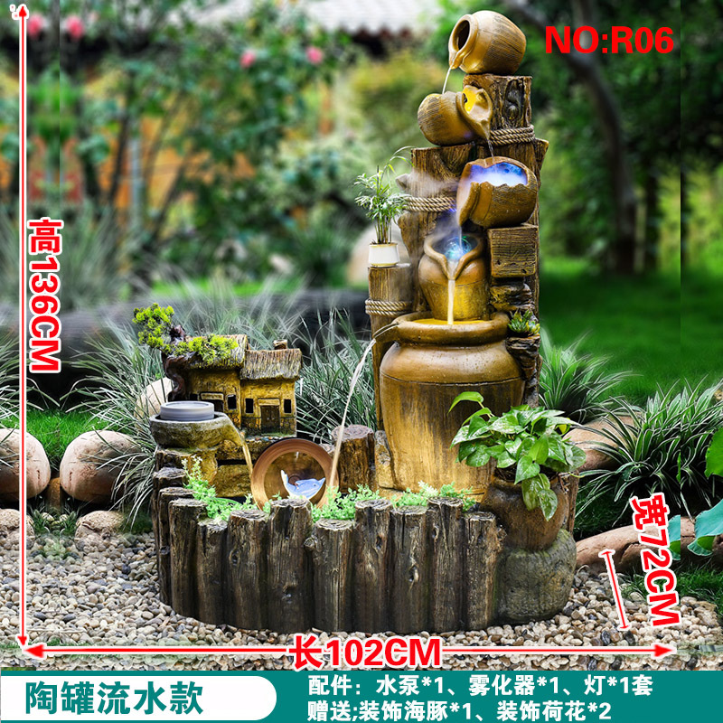 • 도기 항아리 흐르는 물 102 * 너비 72 * 높이 136cm 물 펌프 + 분무기 + 효과 램프 포함