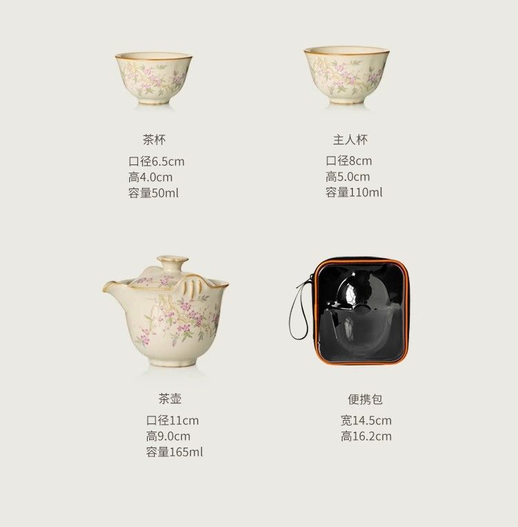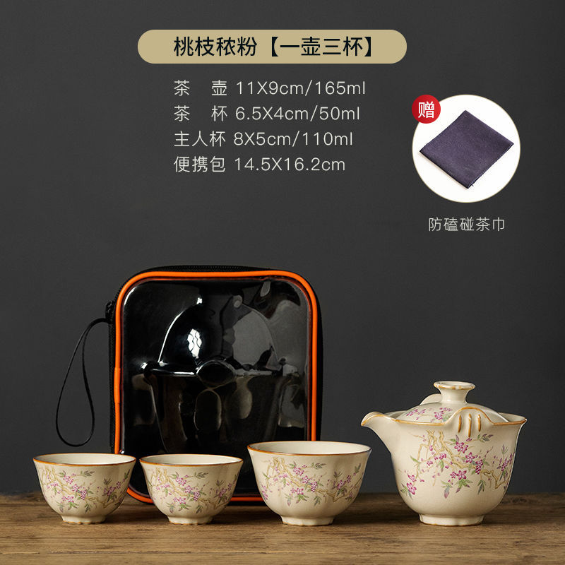 Ru Kiln 여행 차 세트 세트 익스프레스 컵 한 냄비 두 컵 세라믹 야외 차 장비 휴대용 차 세트 보관 가방스토어 가기