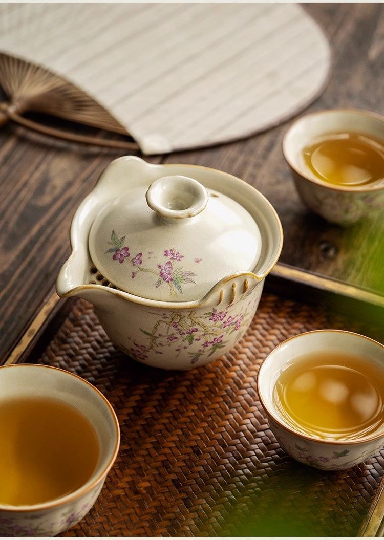 Ru Kiln 여행 차 세트 세트 익스프레스 컵 한 냄비 두 컵 세라믹 야외 차 장비 휴대용 차 세트 보관 가방