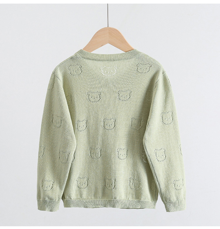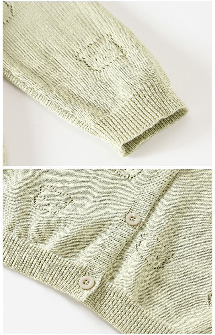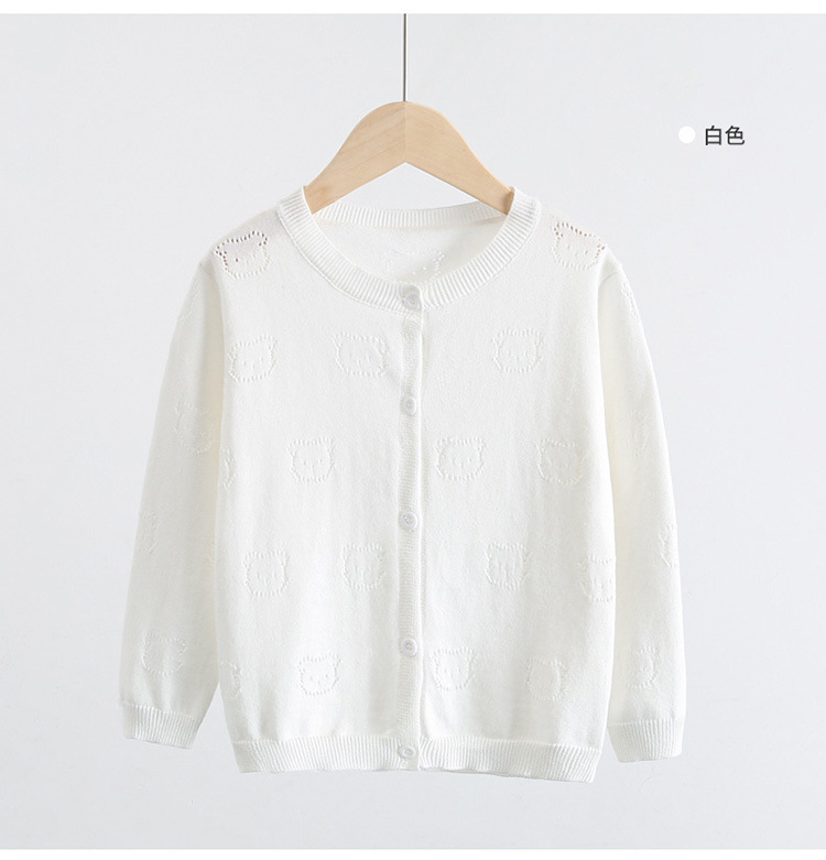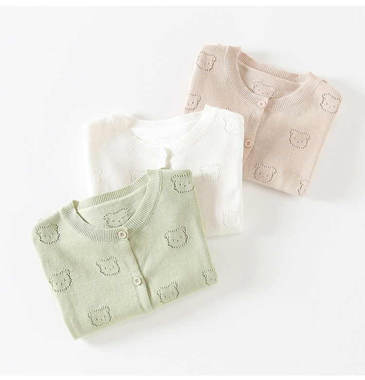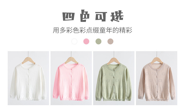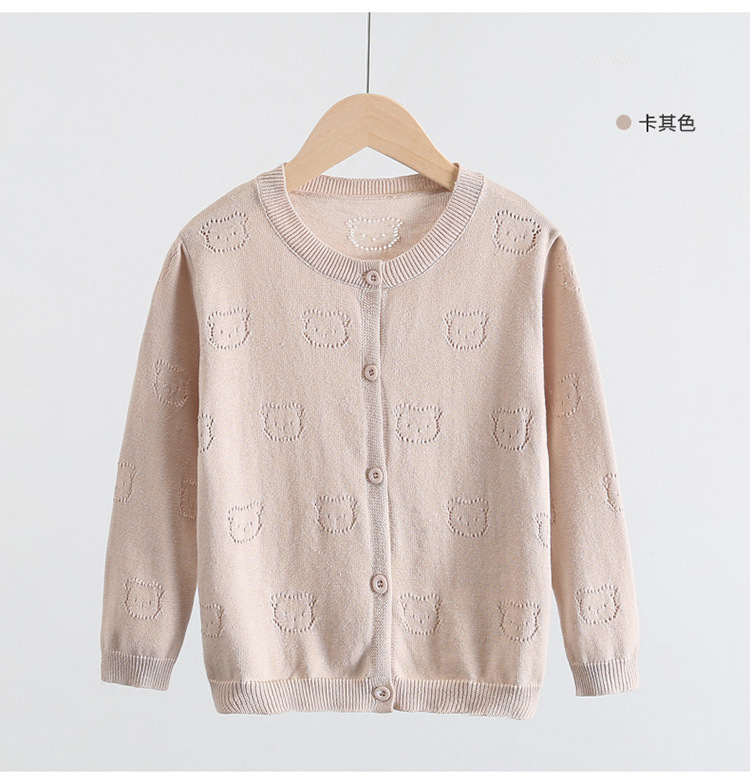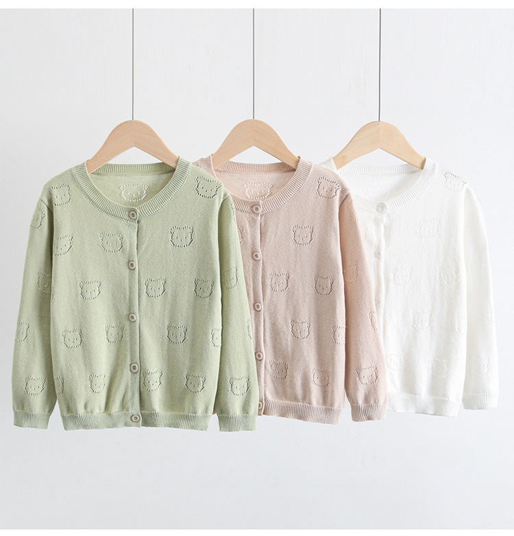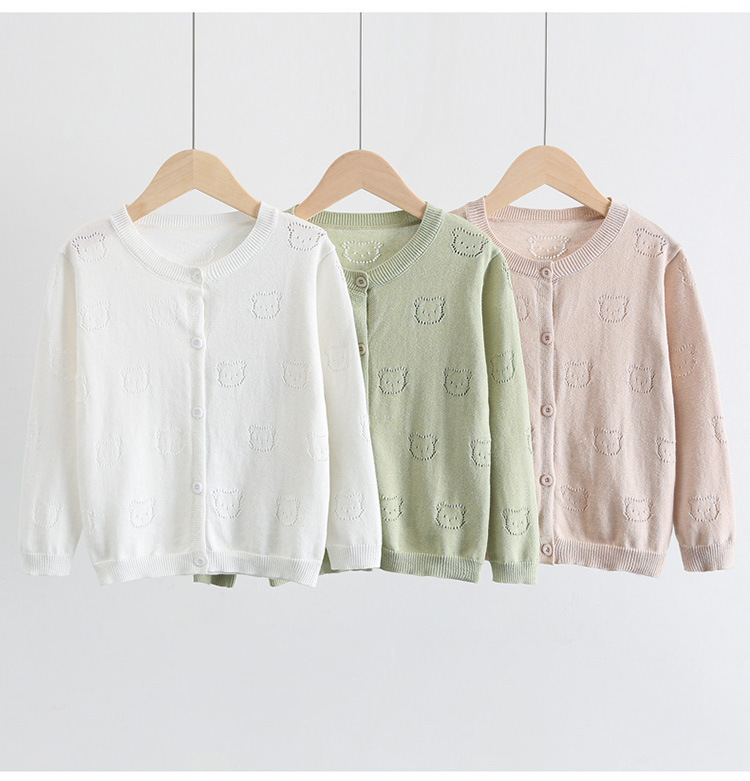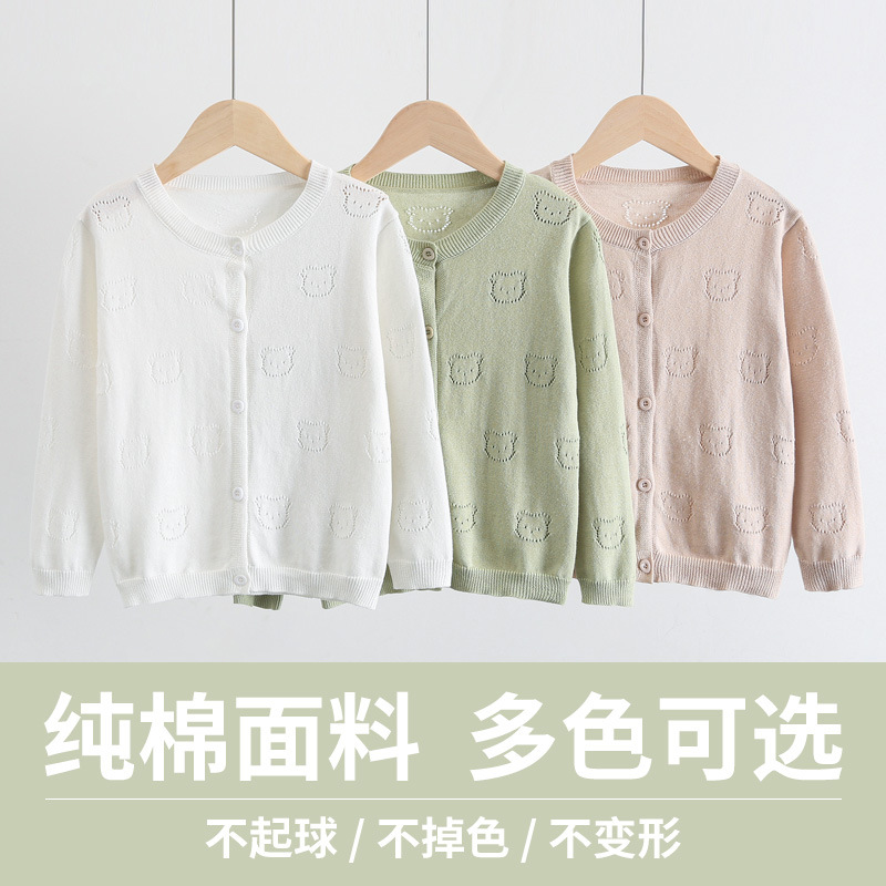 2025 새로운 어린이 스웨터 솔리드 컬러 에어컨 셔츠 여름 소년 간단한 중공 스웨터 소녀 곰 카디건