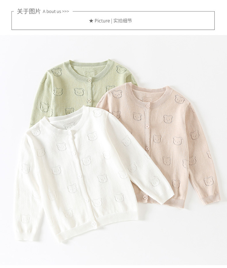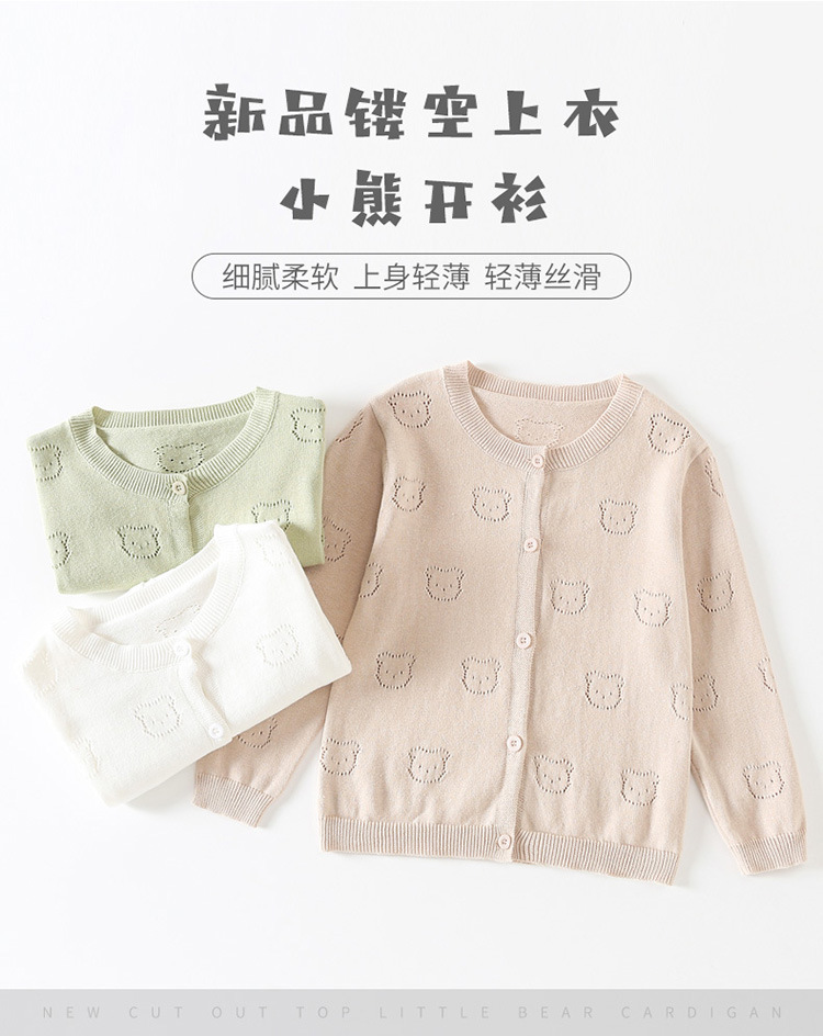 2025 새로운 어린이 스웨터 솔리드 컬러 에어컨 셔츠 여름 소년 간단한 중공 스웨터 소녀 곰 카디건스토어 가기