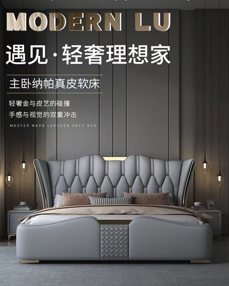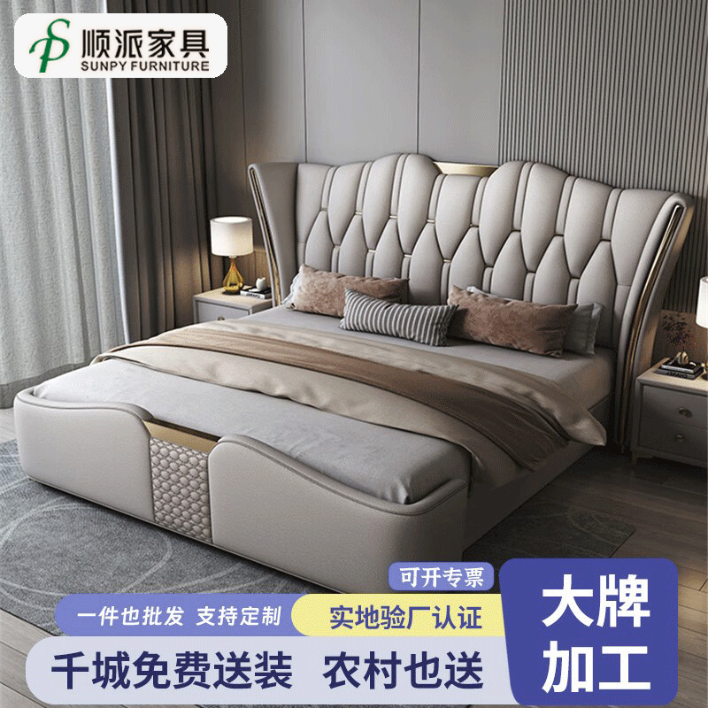 가죽 침대 이탈리아 빛 럭셔리 마스터 침실 1.8 m 더블 침대 1.5m 모던 심플 2 m 가죽 소프트 백 보관 큰 침대스토어 가기