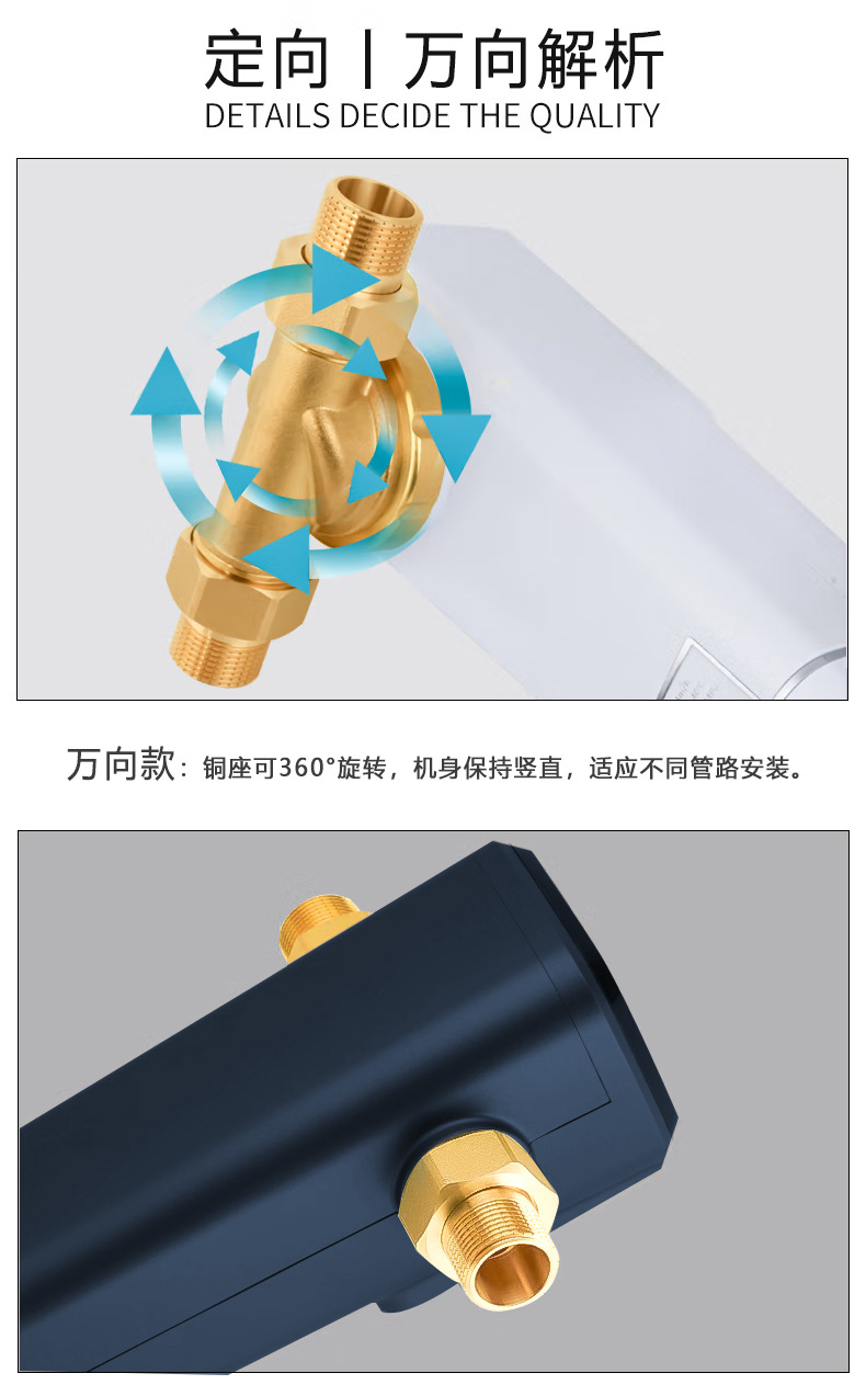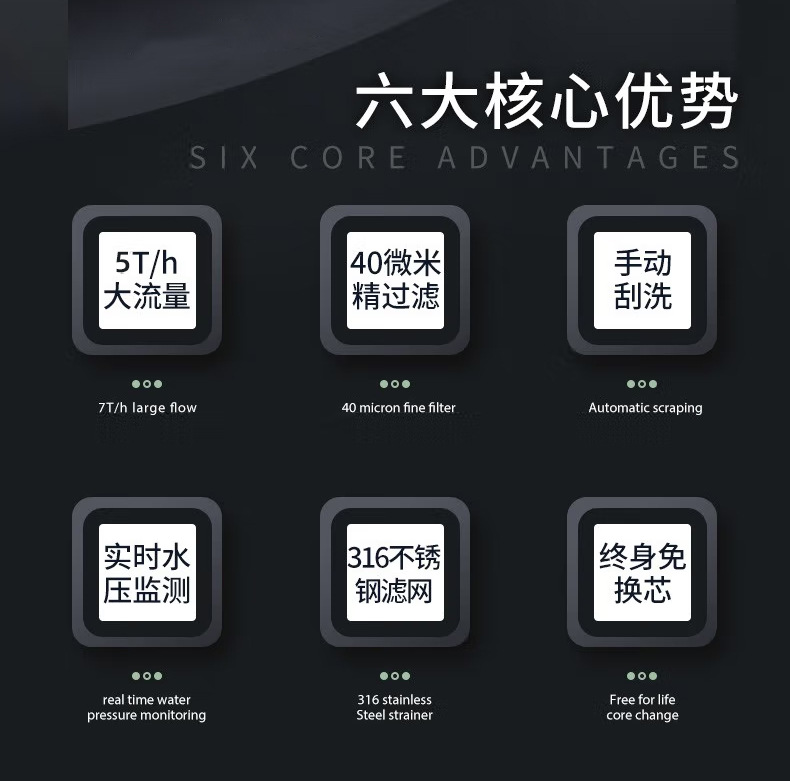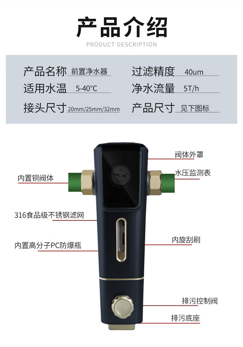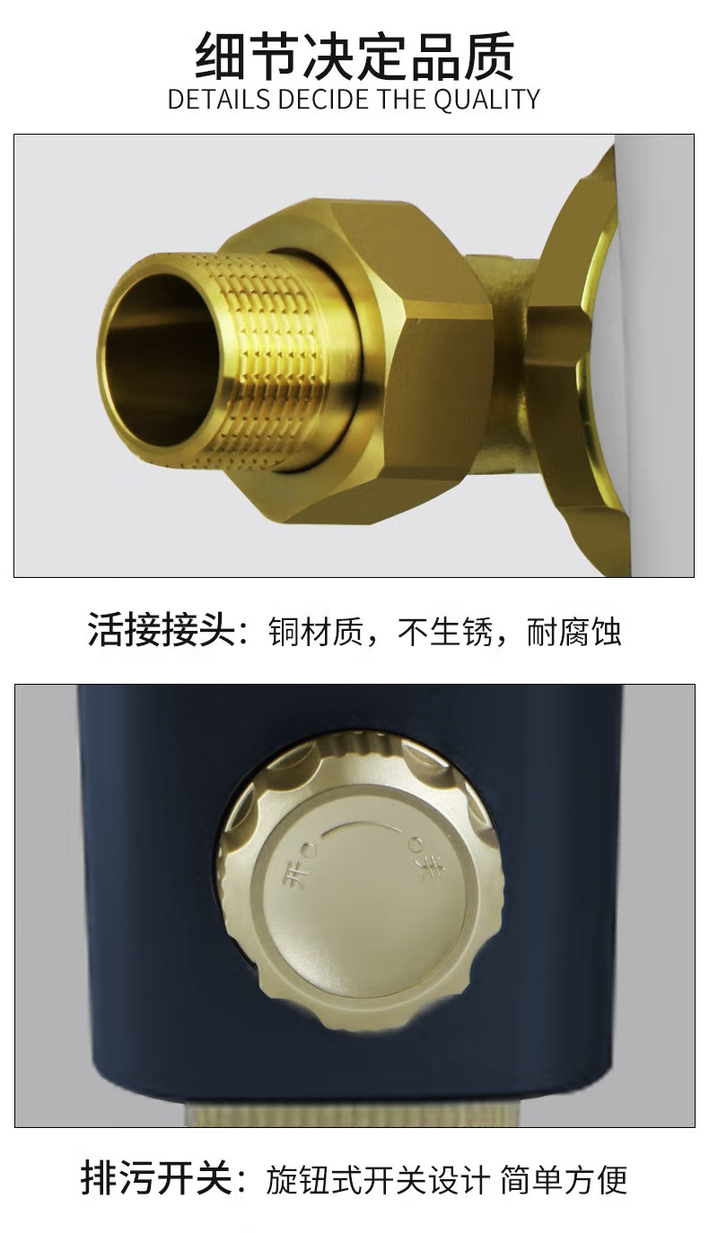 전체 집 중앙 프리 필터 가정용 자동 청소 필터 큰 흐름 백 세척 구리 프리 필터