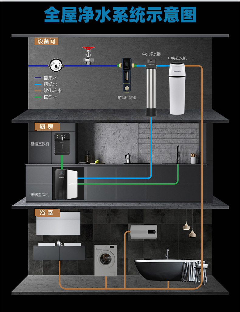 전체 집 중앙 프리 필터 가정용 자동 청소 필터 큰 흐름 백 세척 구리 프리 필터스토어 가기