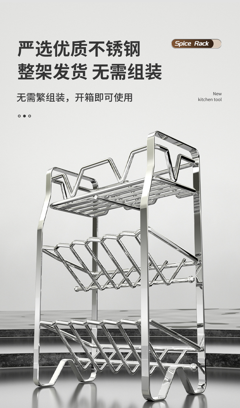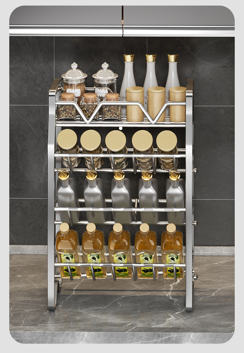 스테인레스 스틸 선반 주방 조미료 랙 데스크탑 스토리지 랙 설치 무료 다층 스토리지 랙 조리대 스토리지 랙