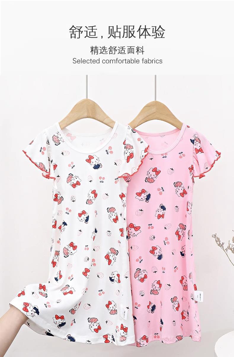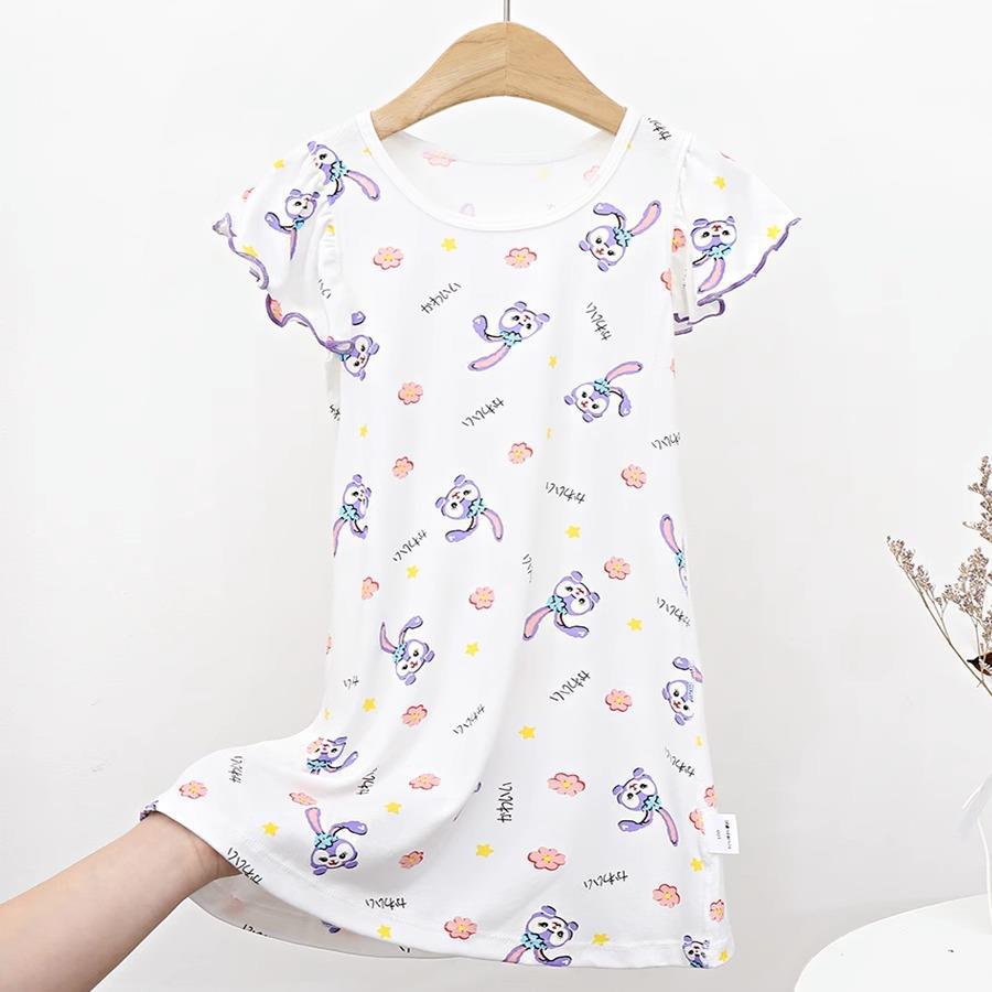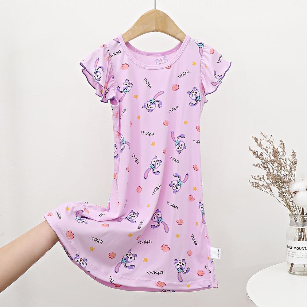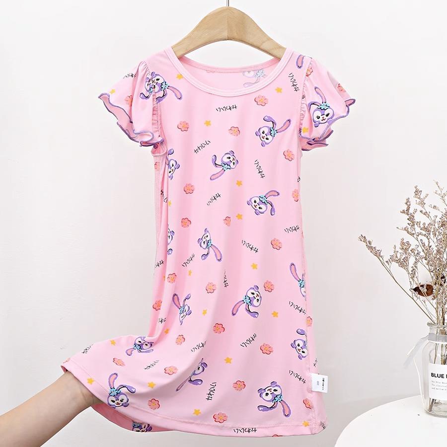 소녀의 잠옷 시원한 여름 얇은 소녀의 공주 스타일 잠옷 아기의 얼음 실크 어린이 가정복 스커트스토어 가기
