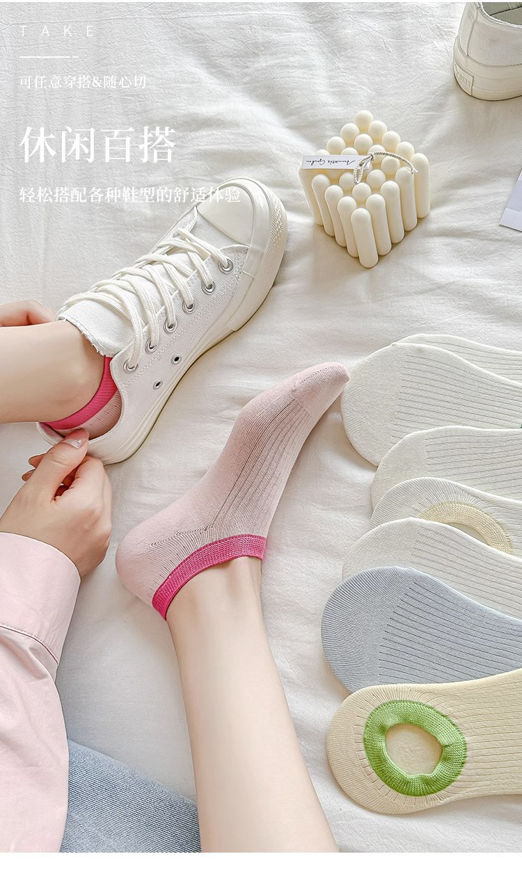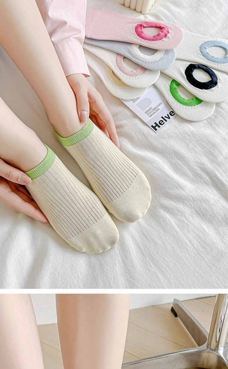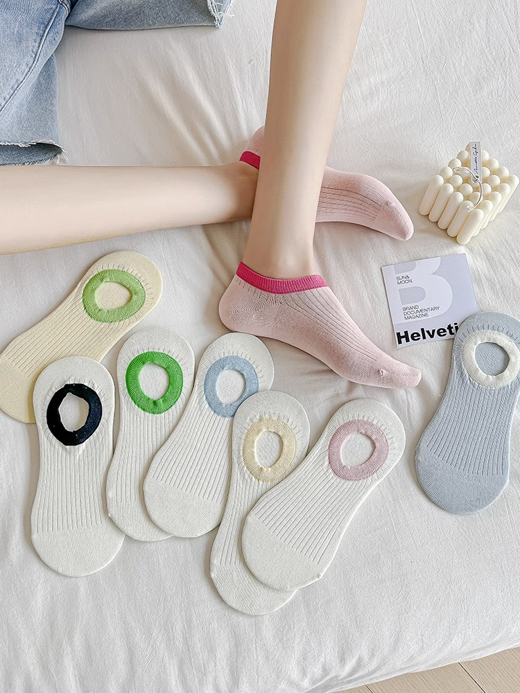 여름 보이지 않는 양말 여성용 얕은 입 얇은 색상 매칭 미끄럼 방지 유지 보수 보트 양말 일본식 유행 만능 양말 실리콘