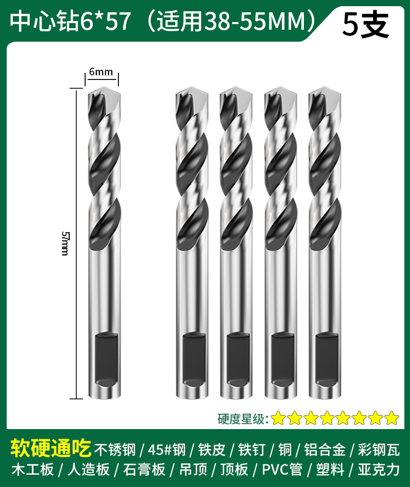• [5개] 센터 드릴 6*57 (38-55mm 구멍 오프너에 적합)