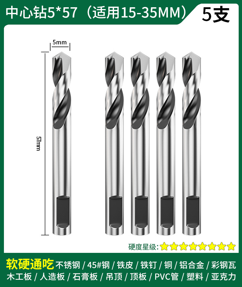 • [5개] 센터 드릴 5*57 (15-35mm 구멍 오프너에 적합)