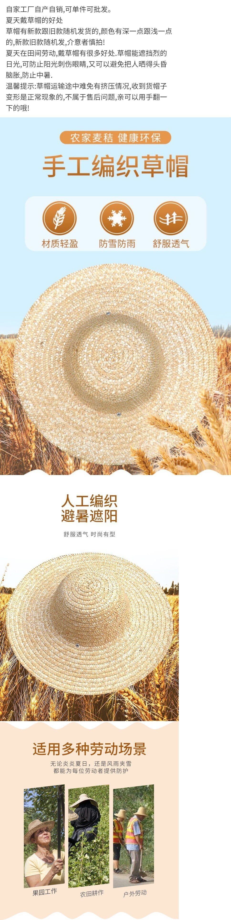 밀짚모자 농부 선 스크린 공사 현장 노동 보호 낚시 야외 차양 모자 대형 처마 짚 짠 밀짚모자 도매스토어 가기
