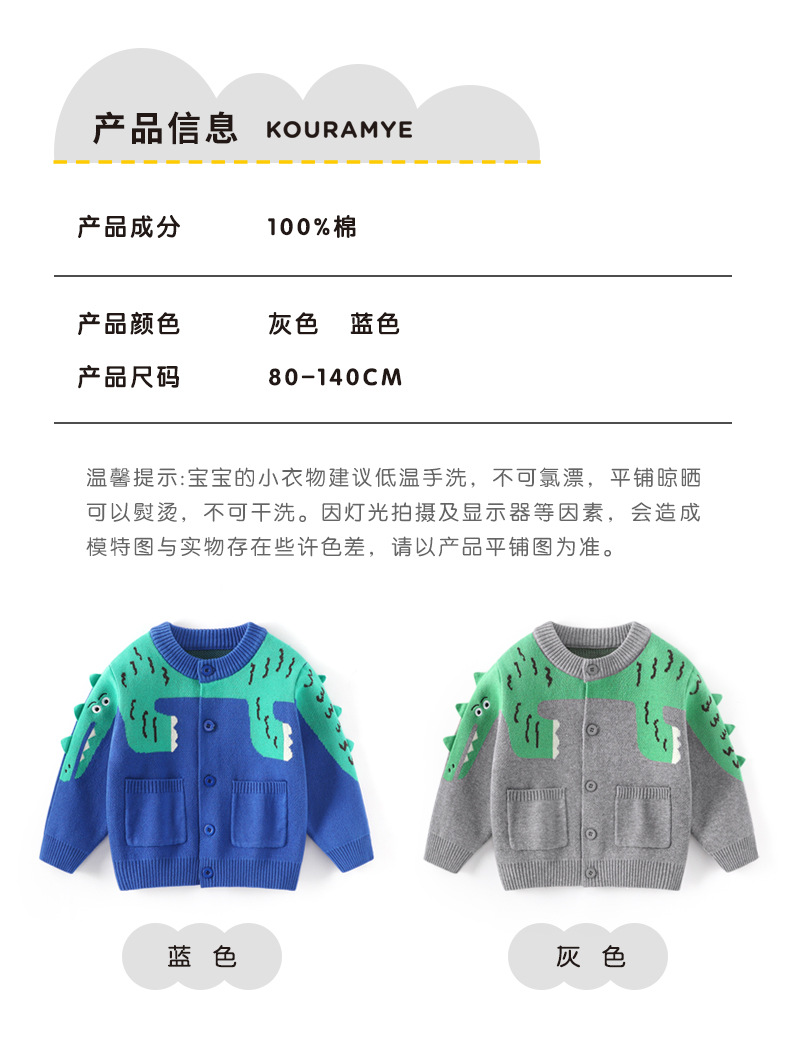가을 새 소년 공룡 가디건 중소 어린이 한국식 만화 더블 레이어 두꺼운 따뜻한 스웨터 클래스 A 면 스웨터스토어 가기