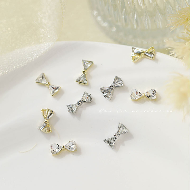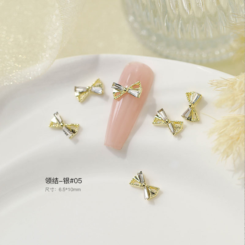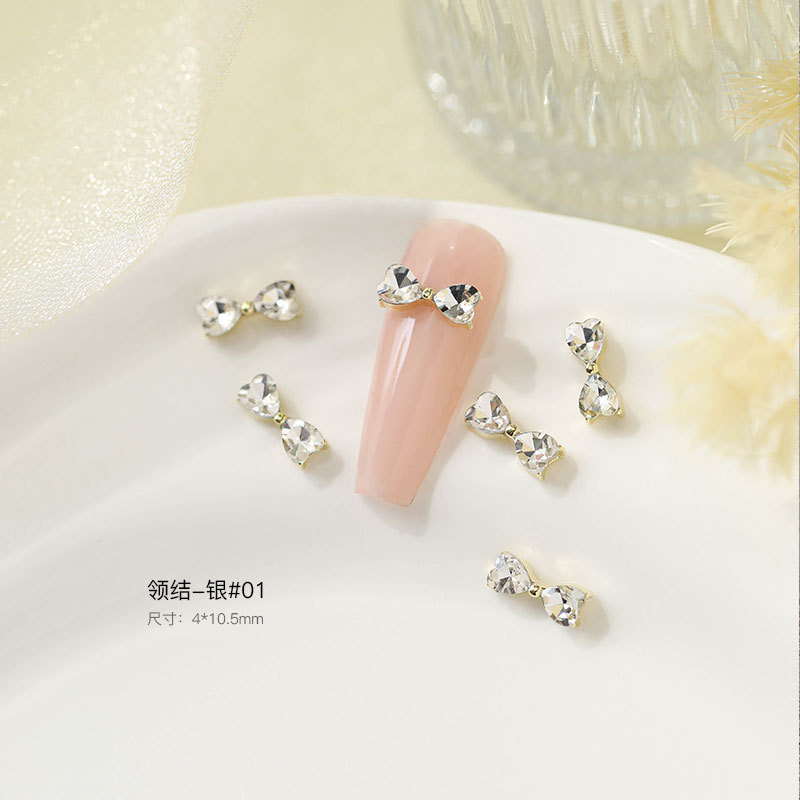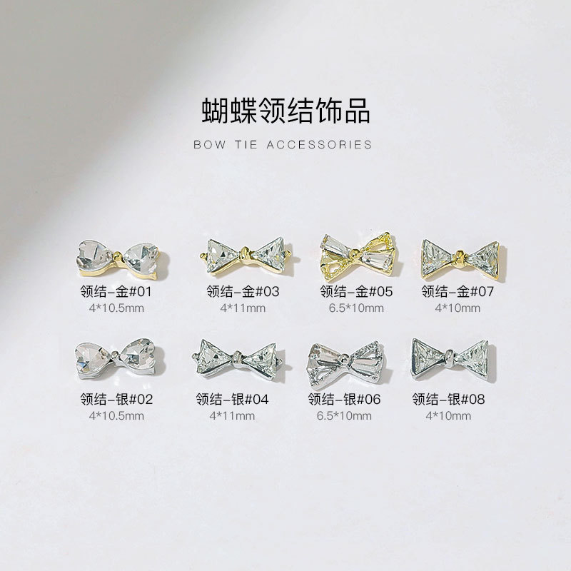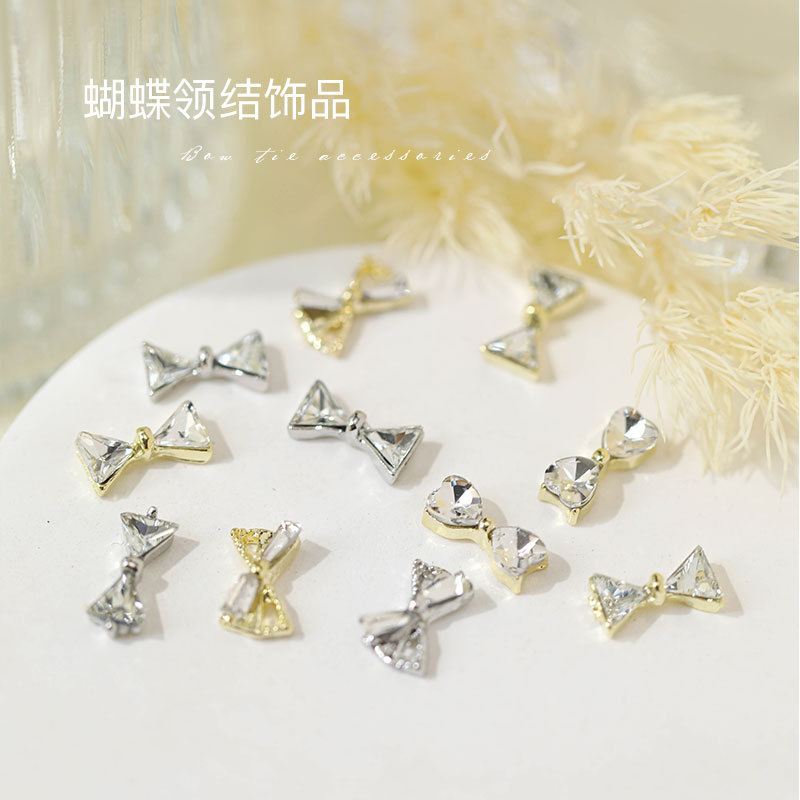그물 빨간 나비 넥타이 드릴 네일 보석 크리스탈 지르콘 활 골드 실버 드릴 네일 액세서리 드릴 도매스토어 가기