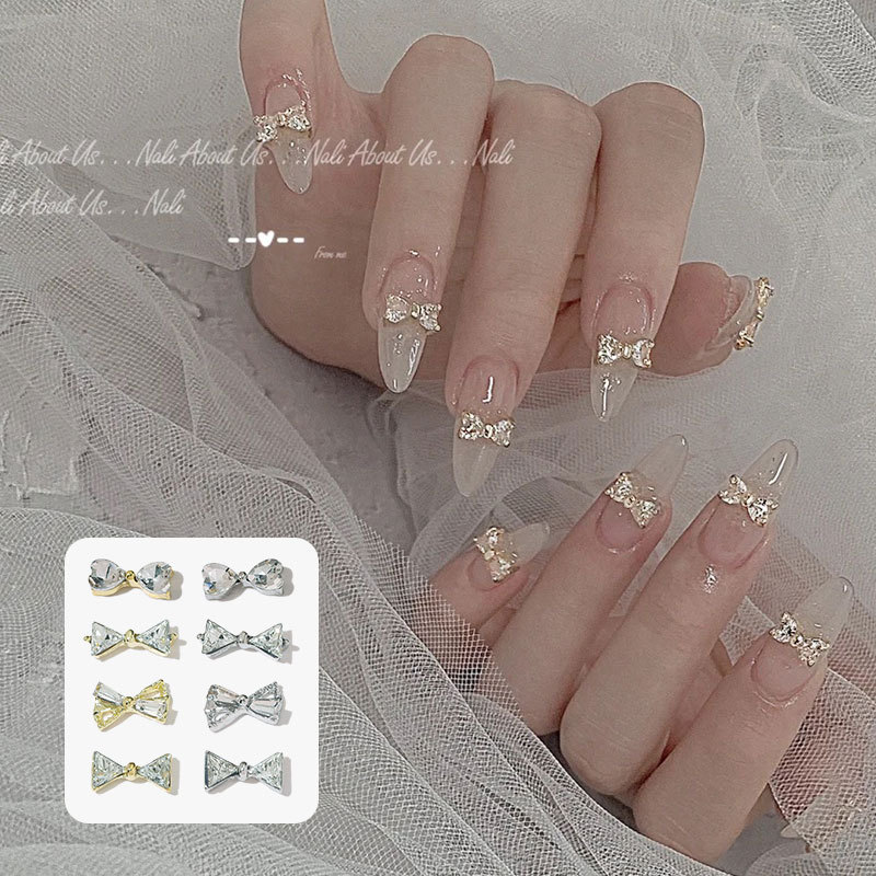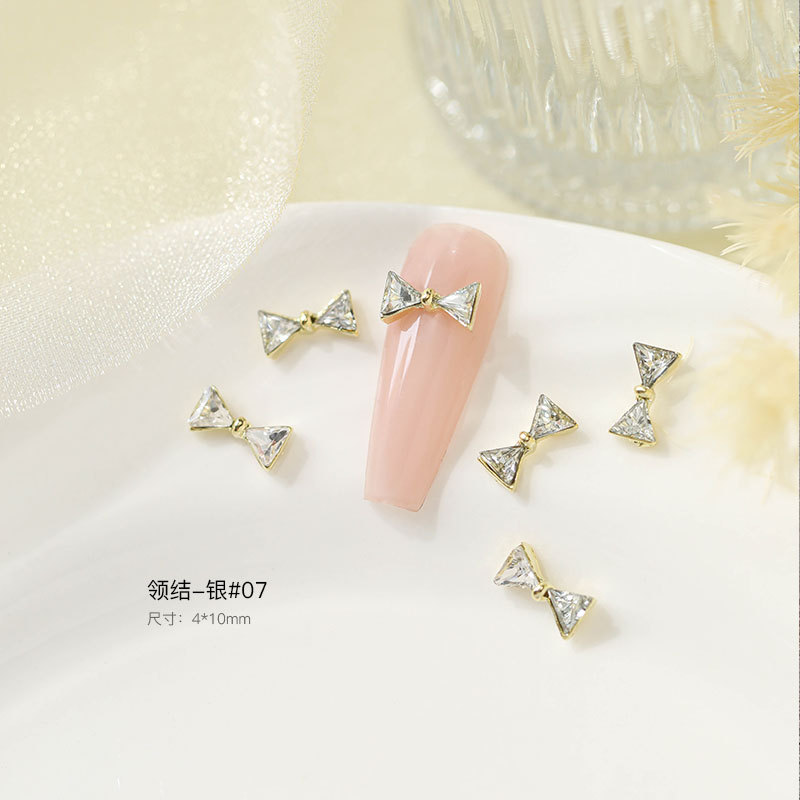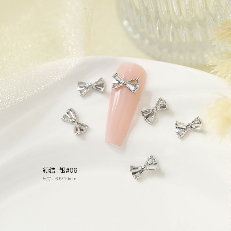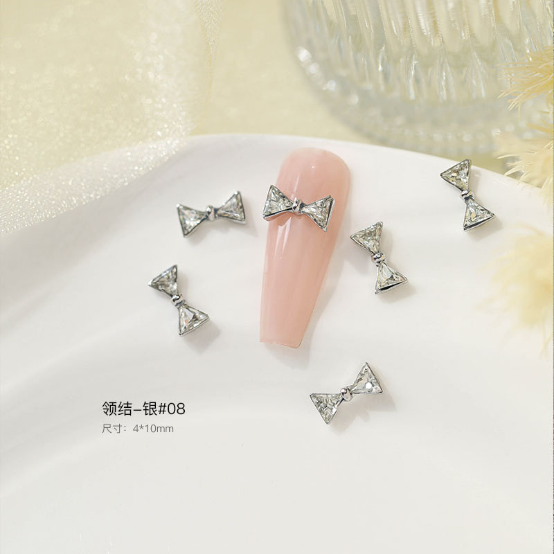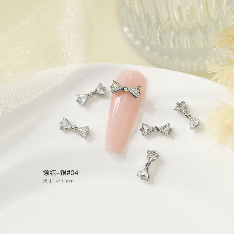 그물 빨간 나비 넥타이 드릴 네일 보석 크리스탈 지르콘 활 골드 실버 드릴 네일 액세서리 드릴 도매스토어 가기