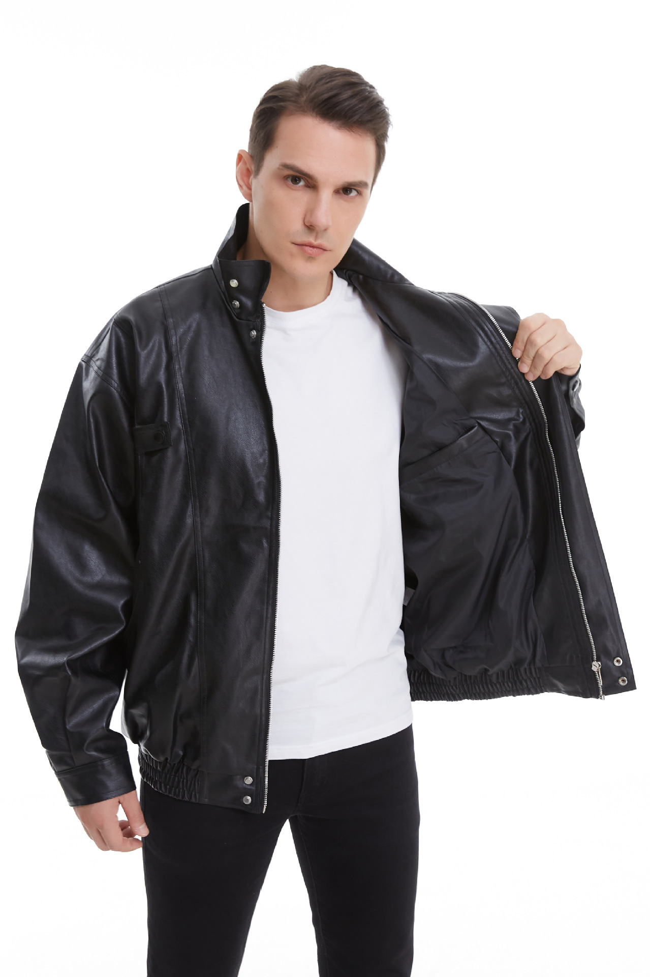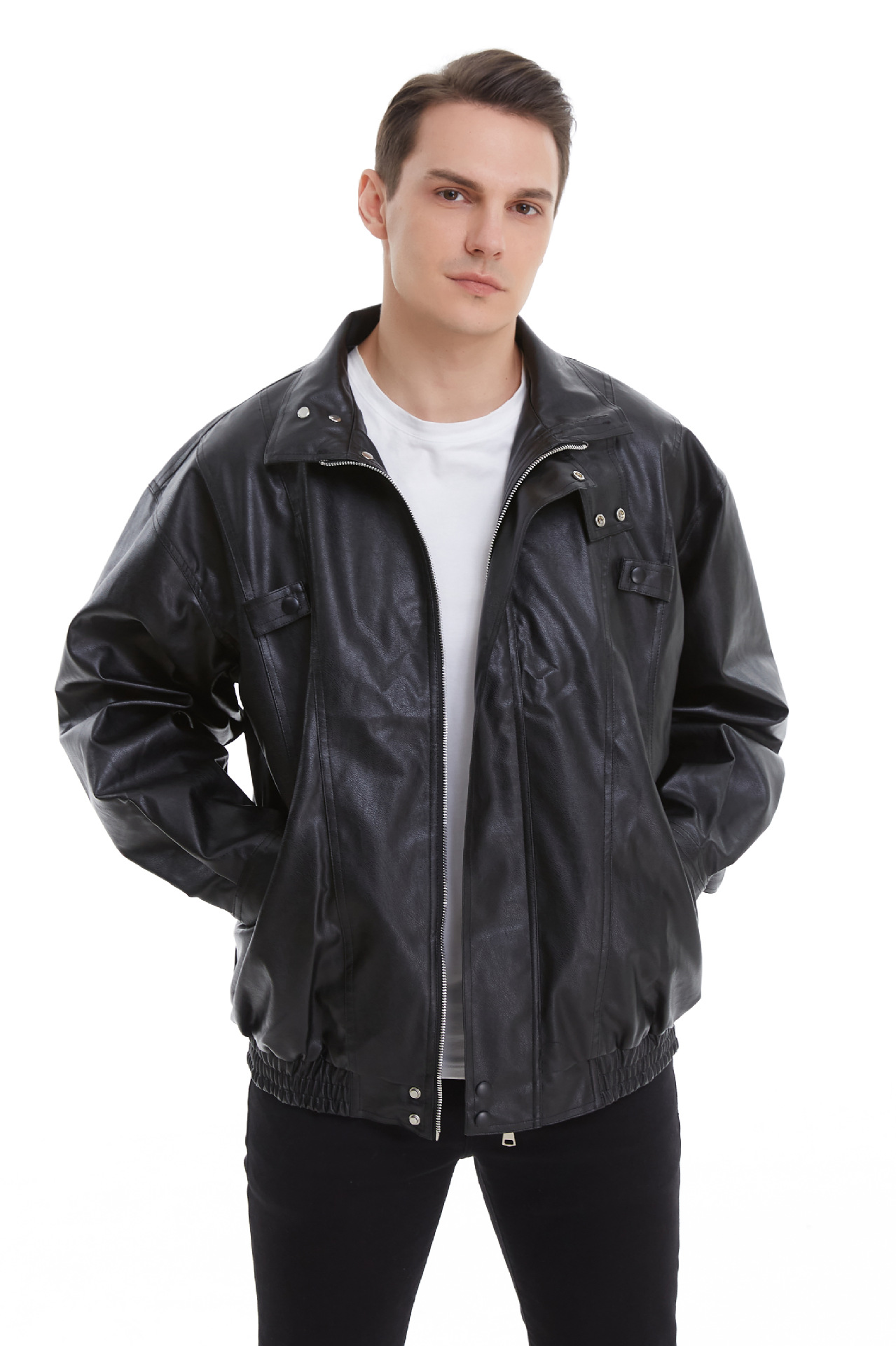 크로스 보더 레트로 봄 남자의 느슨한 캐주얼 Ruffian 잘 생긴 오토바이 PU 가죽 자켓 고급 방풍 재킷