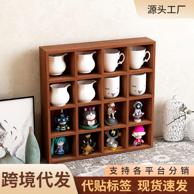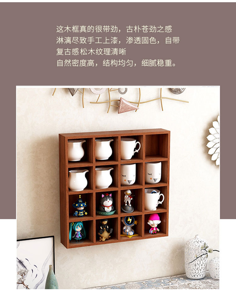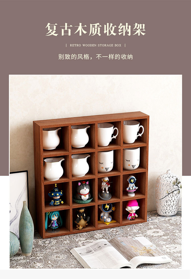 빈티지 벽걸이 벽 스토리지 랙 나무 16 궁전 그리드 데스크탑 스토리지 박스 장식품 블라인드 박스 스토리지 랙 zakka스토어 가기