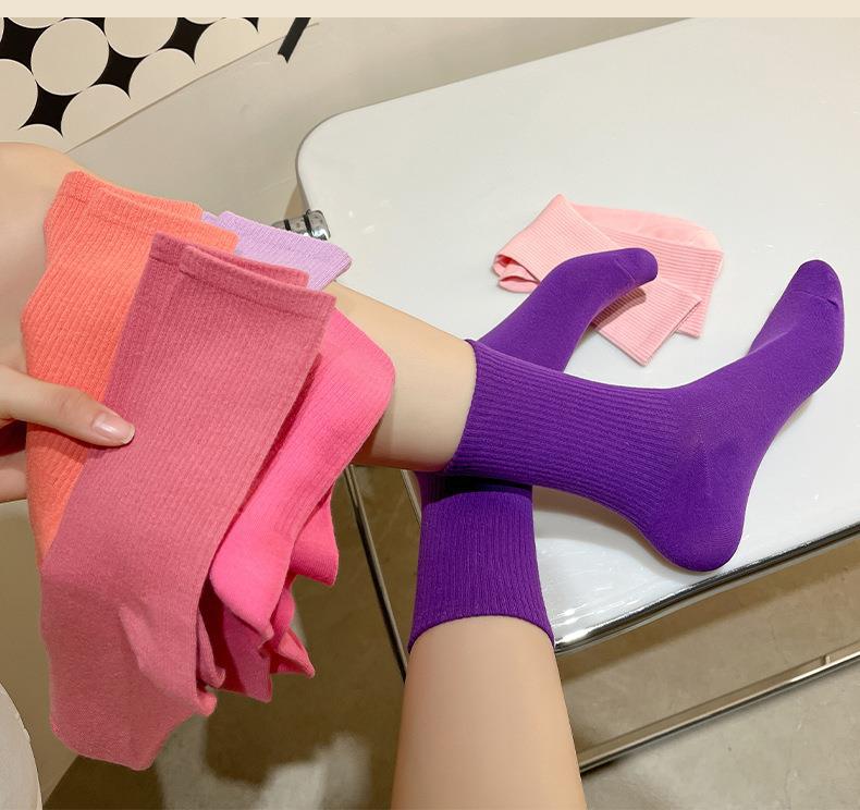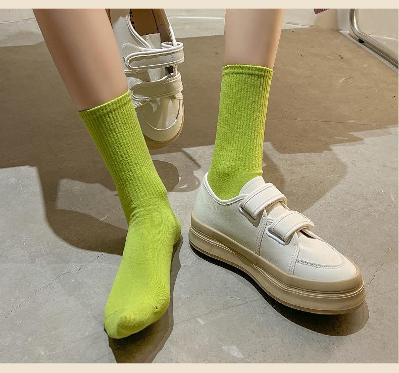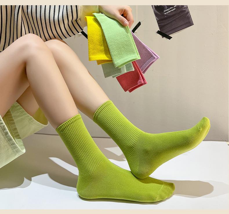 여성용 컬러풀 양말, 봄 여름 면 양말, 파일 양말, 단색 댄스 양말, 스포츠 캐주얼 가을 겨울 남성 양말, 종아리 중간 양말스토어 가기