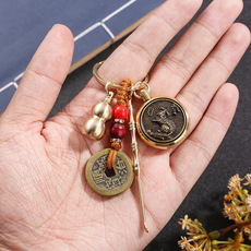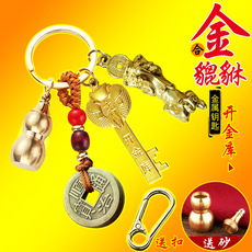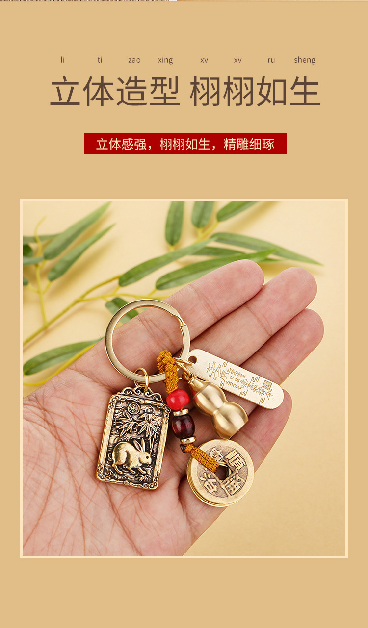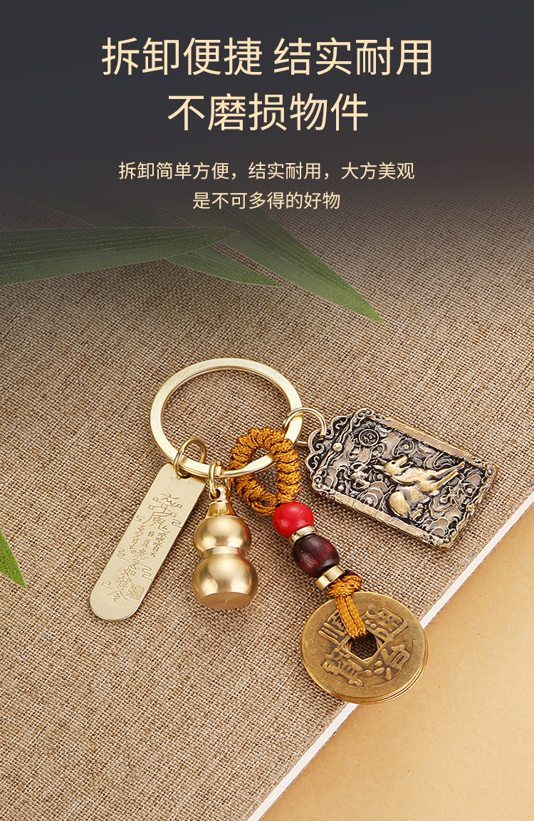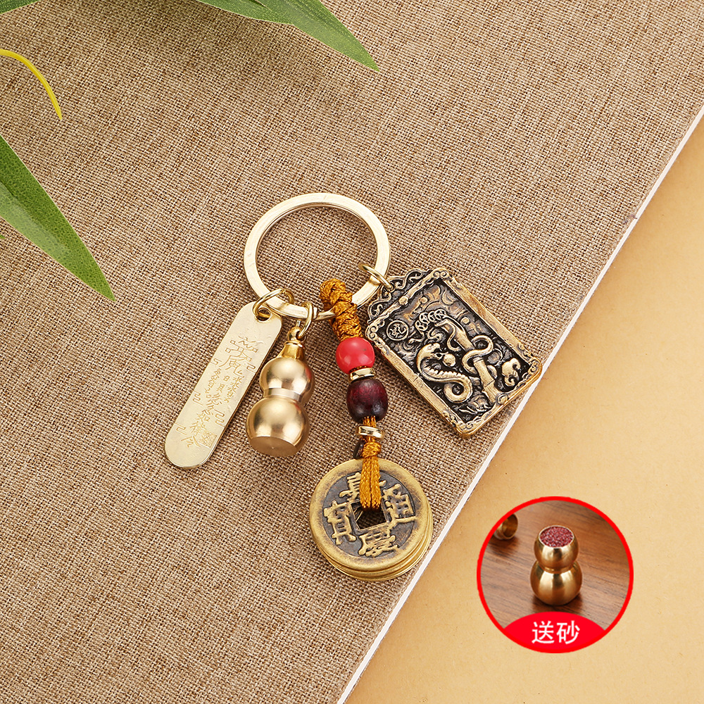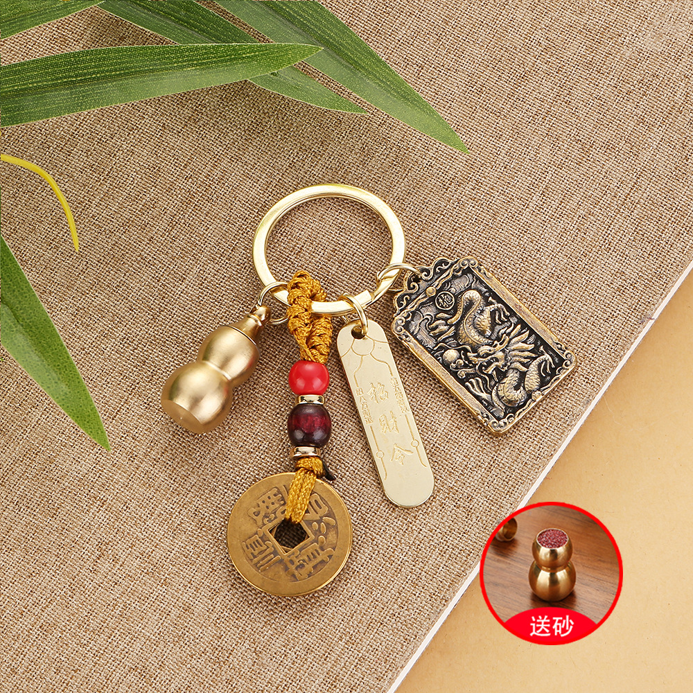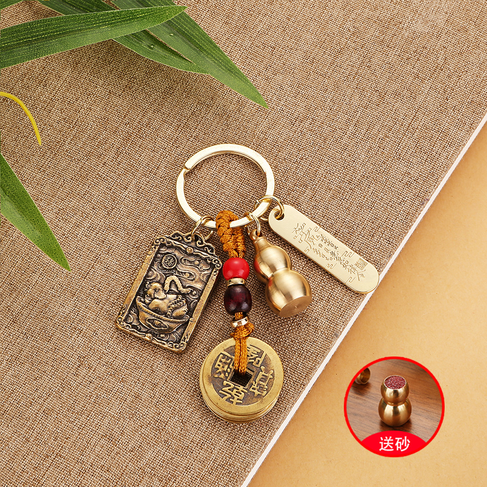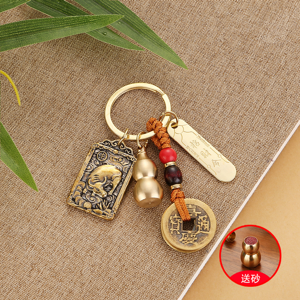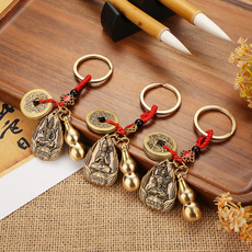황동 다섯 방향 부의 신 Zhao Gongming 행운의 운명 다섯 황제 조롱박 12 조디악 열쇠 고리 펜던트 자동차 도매스토어 가기