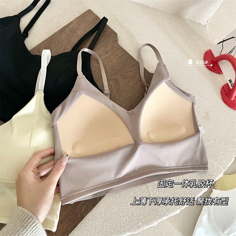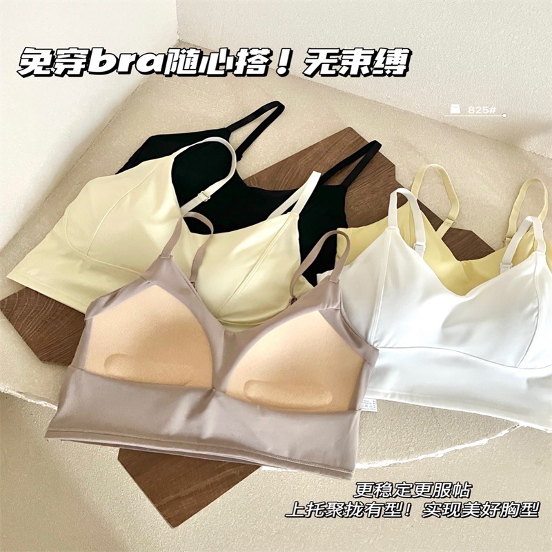 새로운 아이스 실크 조절 가능한 캐미솔 여성용 푸시업 내부 튜브 탑 라텍스 패드 편안한 고정 컵 모든 경기 속옷