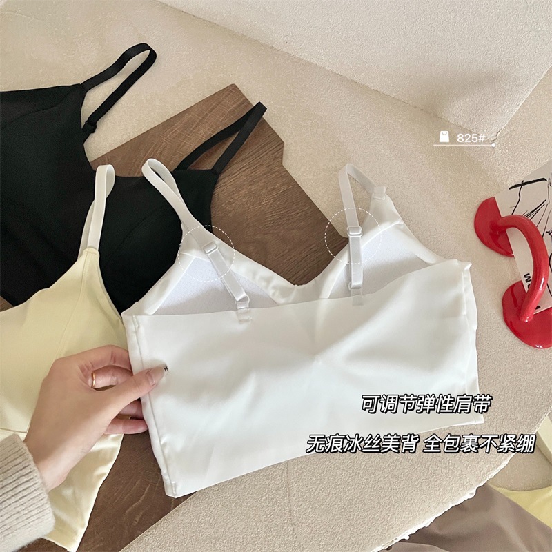 새로운 아이스 실크 조절 가능한 캐미솔 여성용 푸시업 내부 튜브 탑 라텍스 패드 편안한 고정 컵 모든 경기 속옷스토어 가기