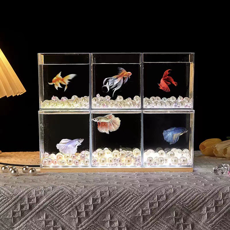 미니 작은 물고기 탱크 투명 빌딩 블록 버킷 물고기 탱크 수조 데스크탑 창조적 인 풍경 플라스틱 두유 상자