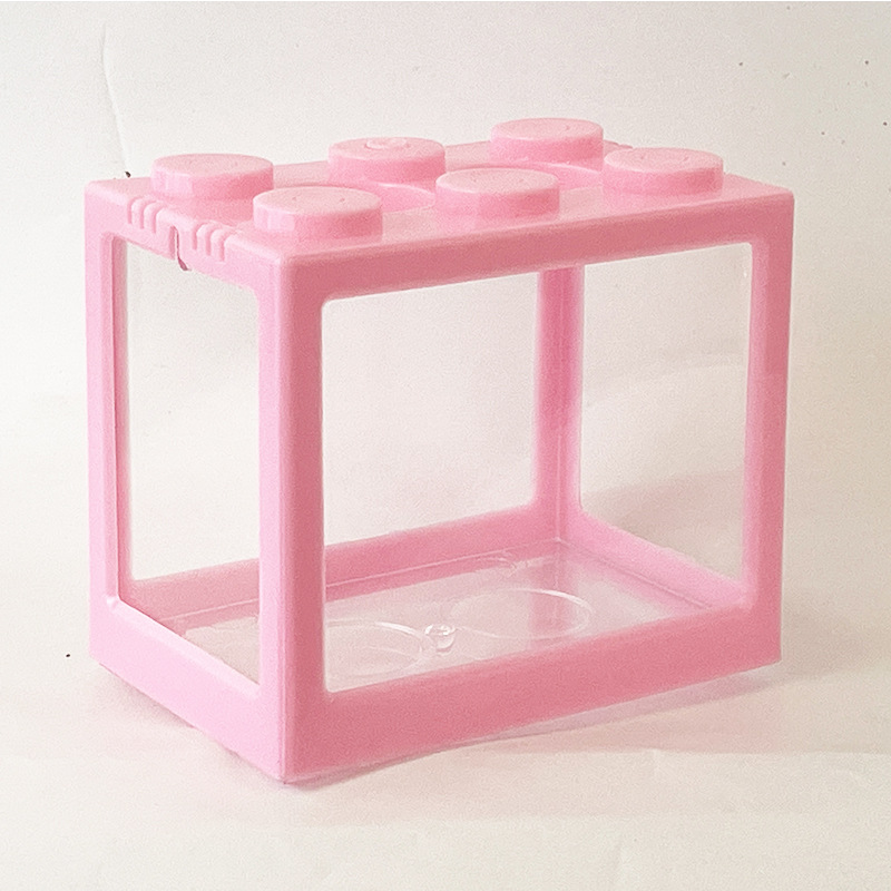 미니 작은 물고기 탱크 투명 빌딩 블록 버킷 물고기 탱크 수조 데스크탑 창조적 인 풍경 플라스틱 두유 상자스토어 가기