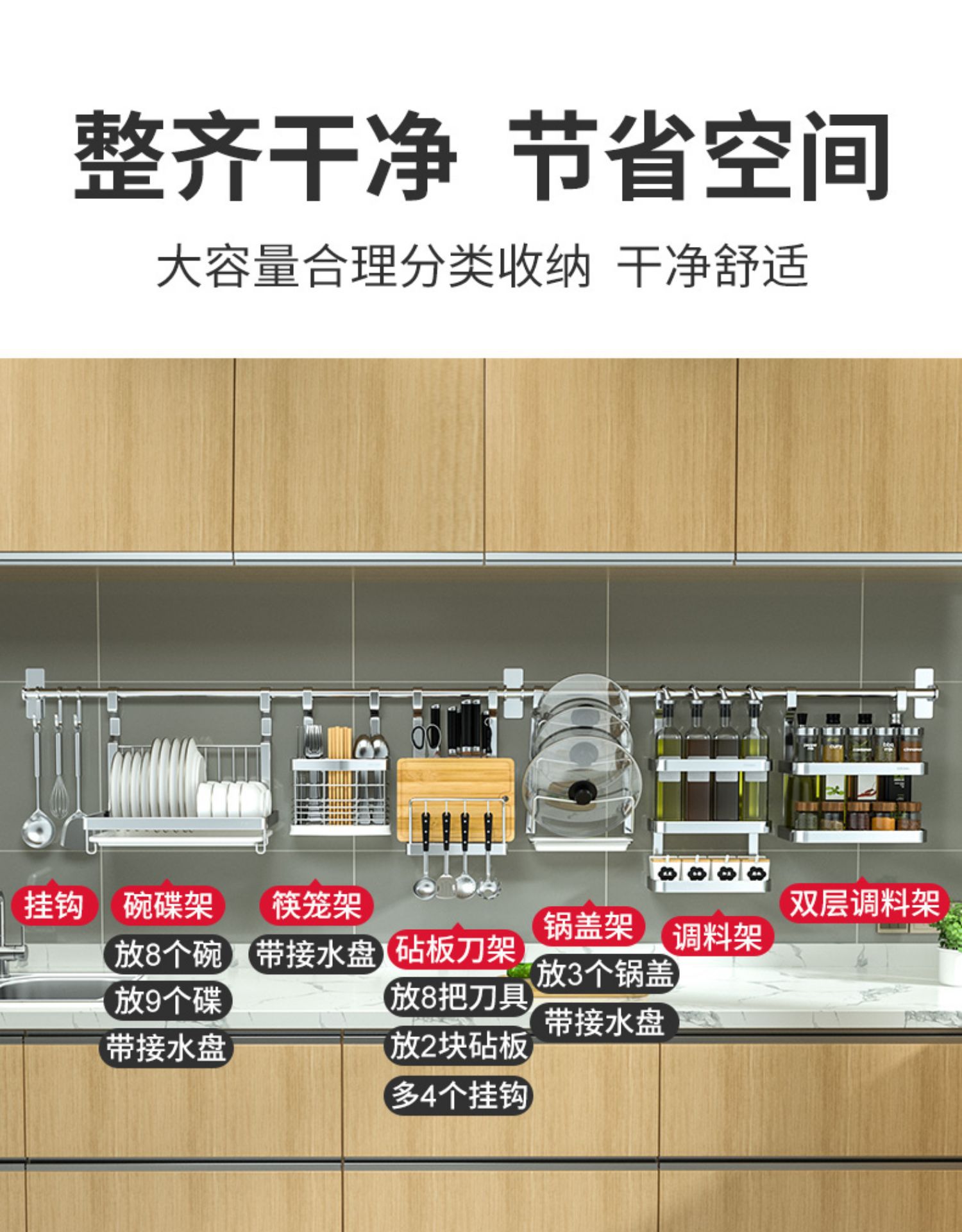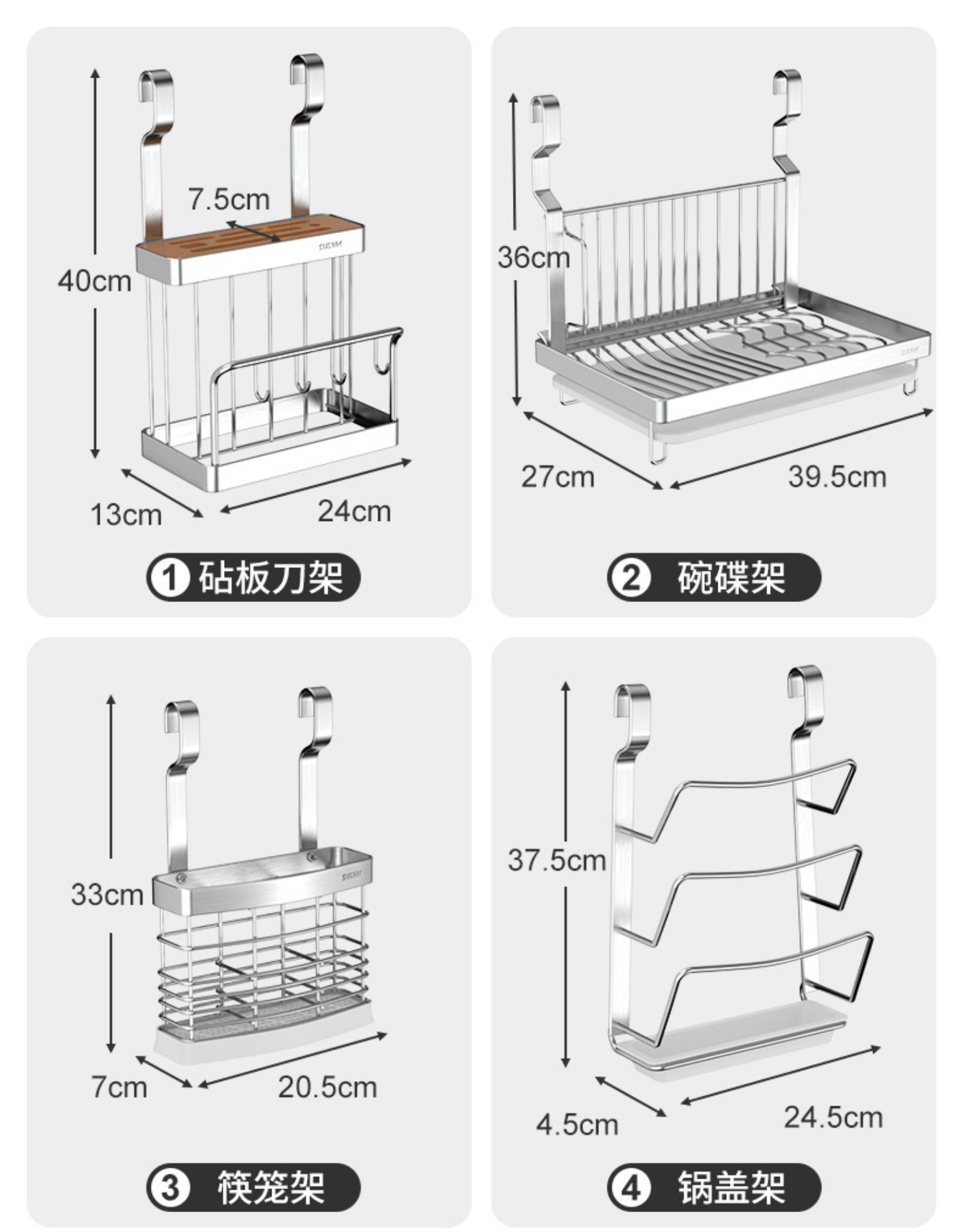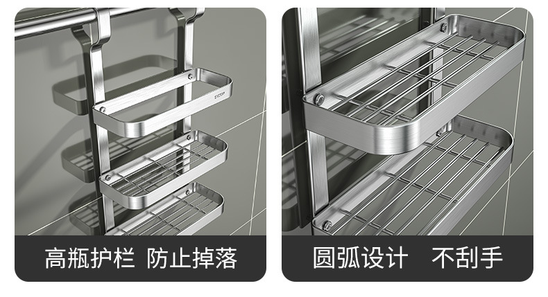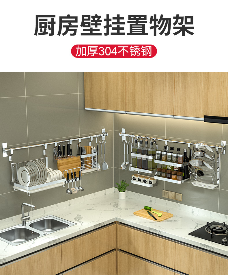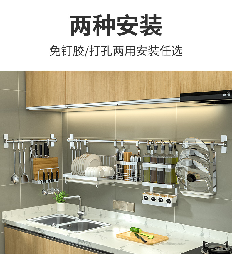 304 스테인레스 스틸 주방 랙 벽걸이 조미료 그릇 및 접시 보관 랙 펀치없는 펜던트 나이프와 젓가락 랙