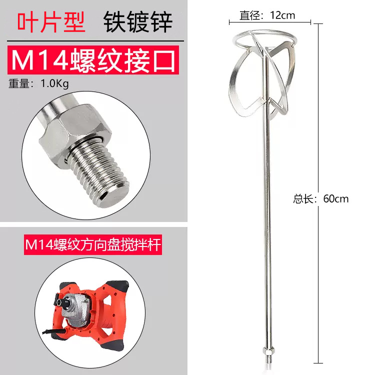 교반기 퍼티 파우더 믹서 휴대용 페인트 시멘트 식품 등급 스테인레스 스틸 교반 막대 M14 철 아연 도금