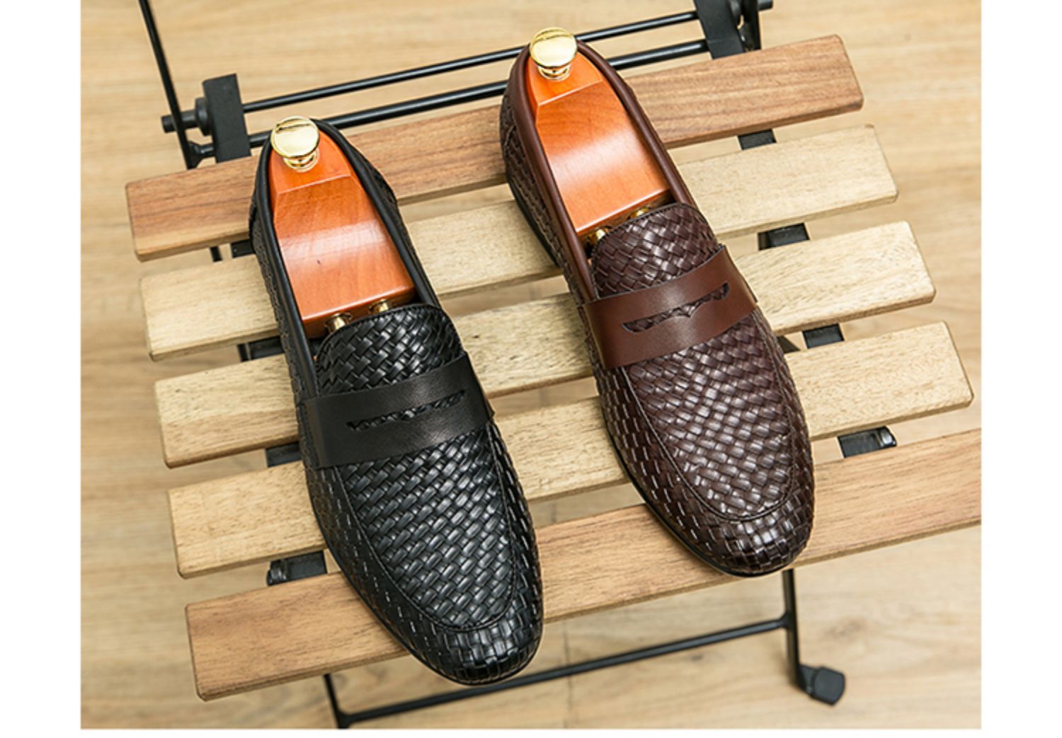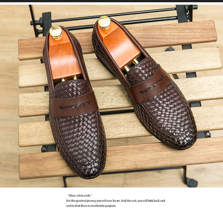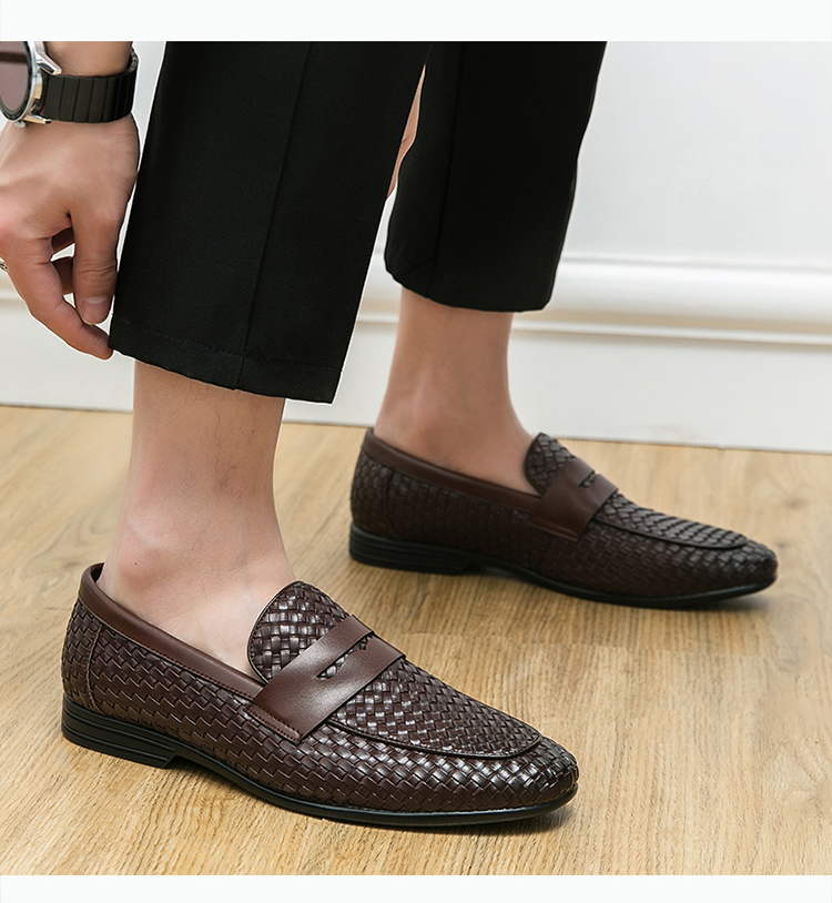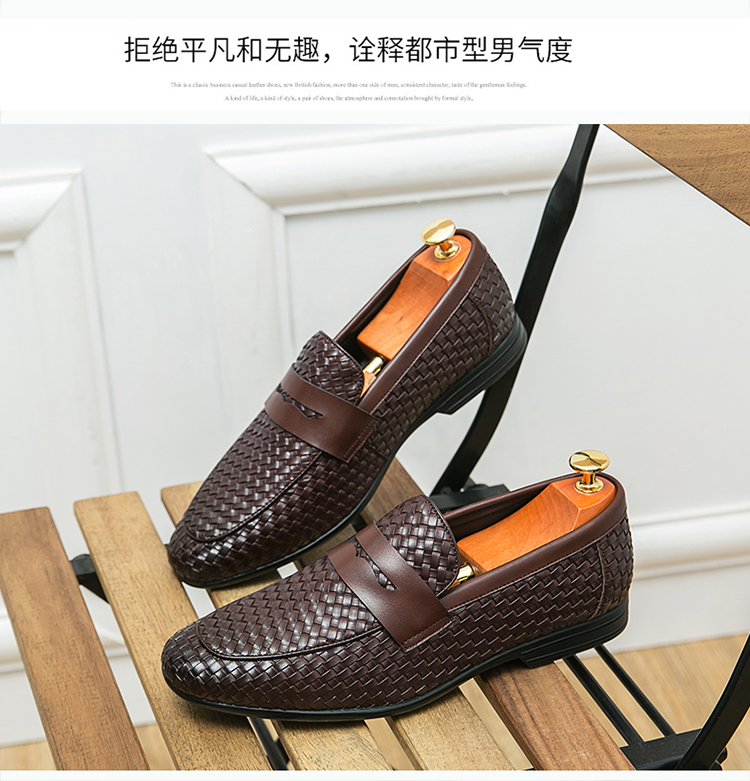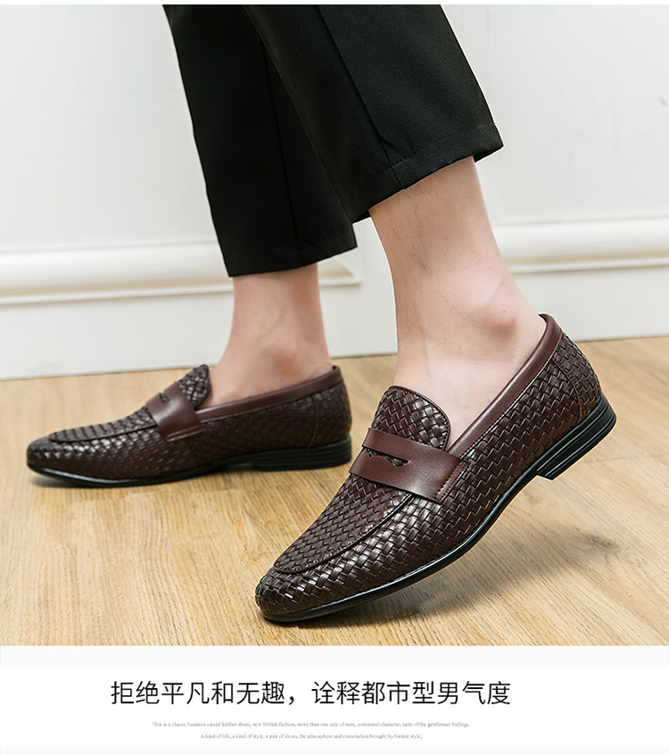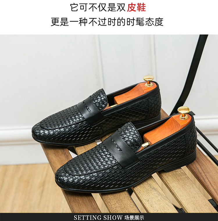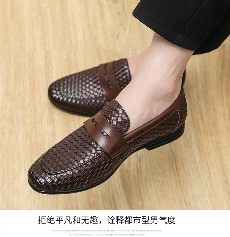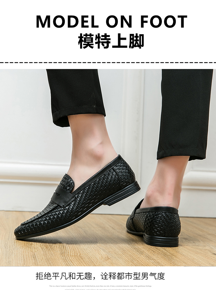여름 가죽 신발 남자의 2023 새로운 정품 가죽 짠 슬립온 로퍼 영국 원피스 캐주얼 트렌디 신발스토어 가기