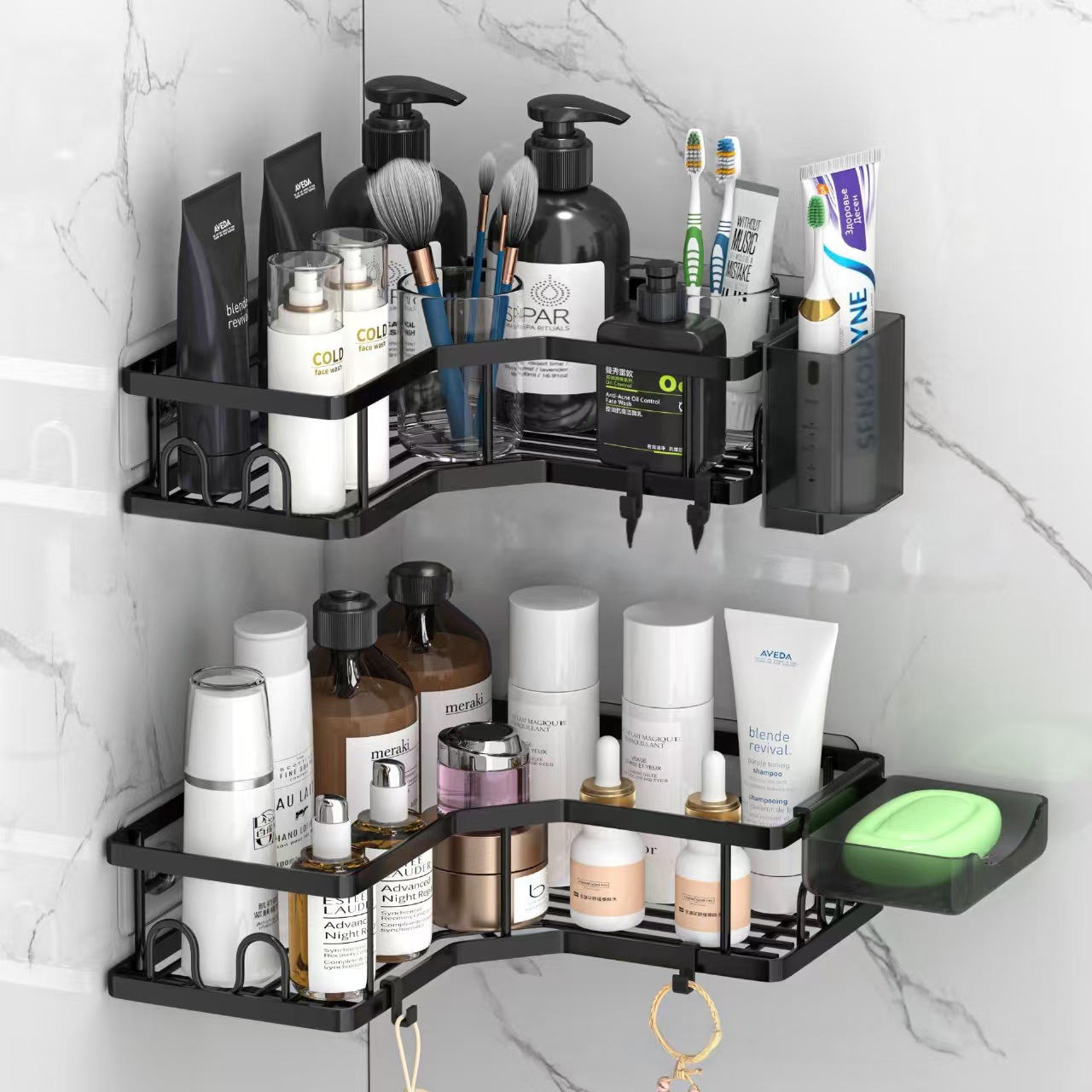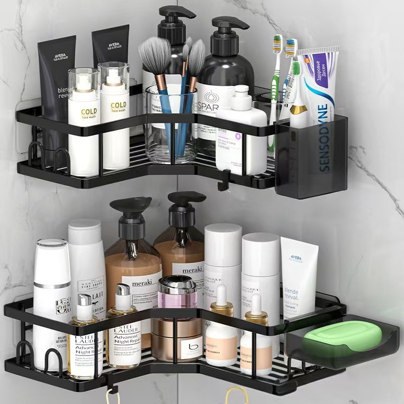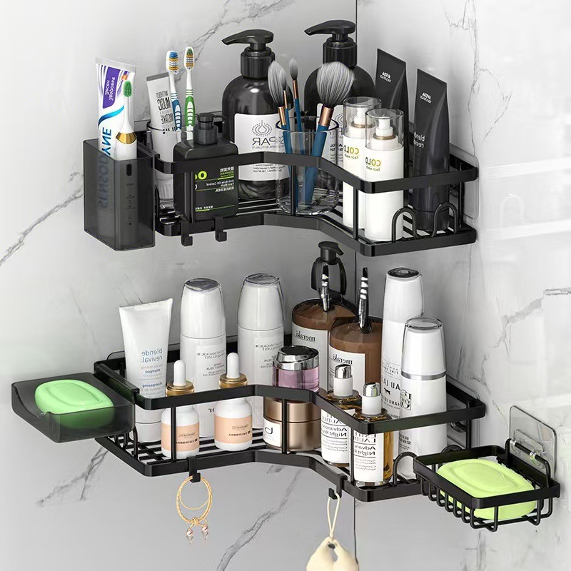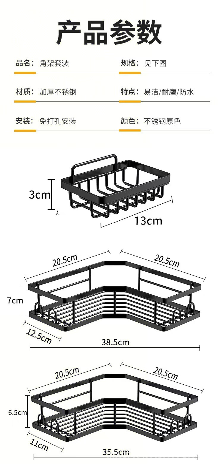 단철 삼각형 스토리지 랙 욕실 펀치 프리 스토리지 랙 욕실 벽 코너 벽걸이 세면도구 마무리 랙
