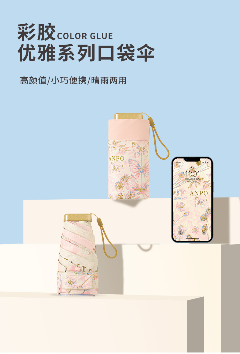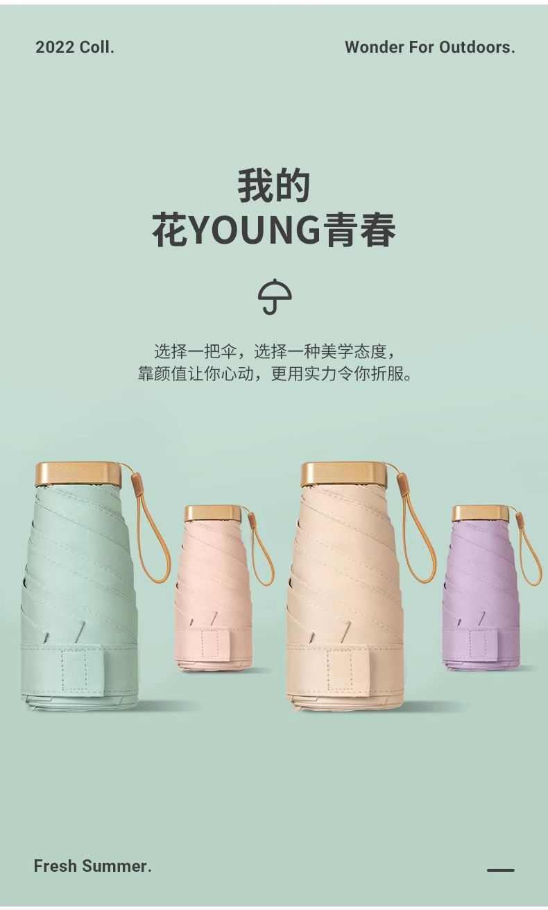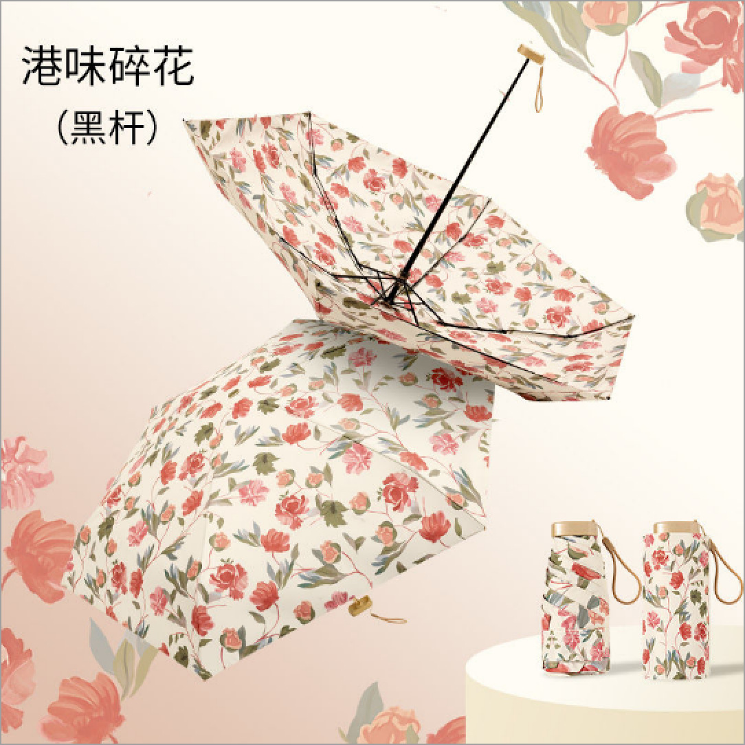우산 레트로 체리 플랫 60% 배 햇빛 우산 카드 컬러 접착제 접는 햇빛과 비 이중 사용 선 스크린 우수한 감각