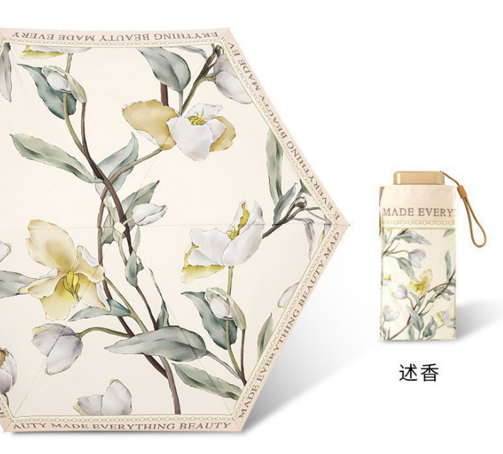 우산 레트로 체리 플랫 60% 배 햇빛 우산 카드 컬러 접착제 접는 햇빛과 비 이중 사용 선 스크린 우수한 감각스토어 가기