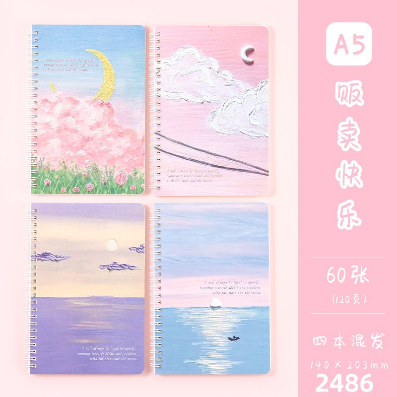 크리에이티브 애니메이션 유화 커버 두꺼운 교실 노트 노트 60 120 페이지 수평선 코일 도매스토어 가기