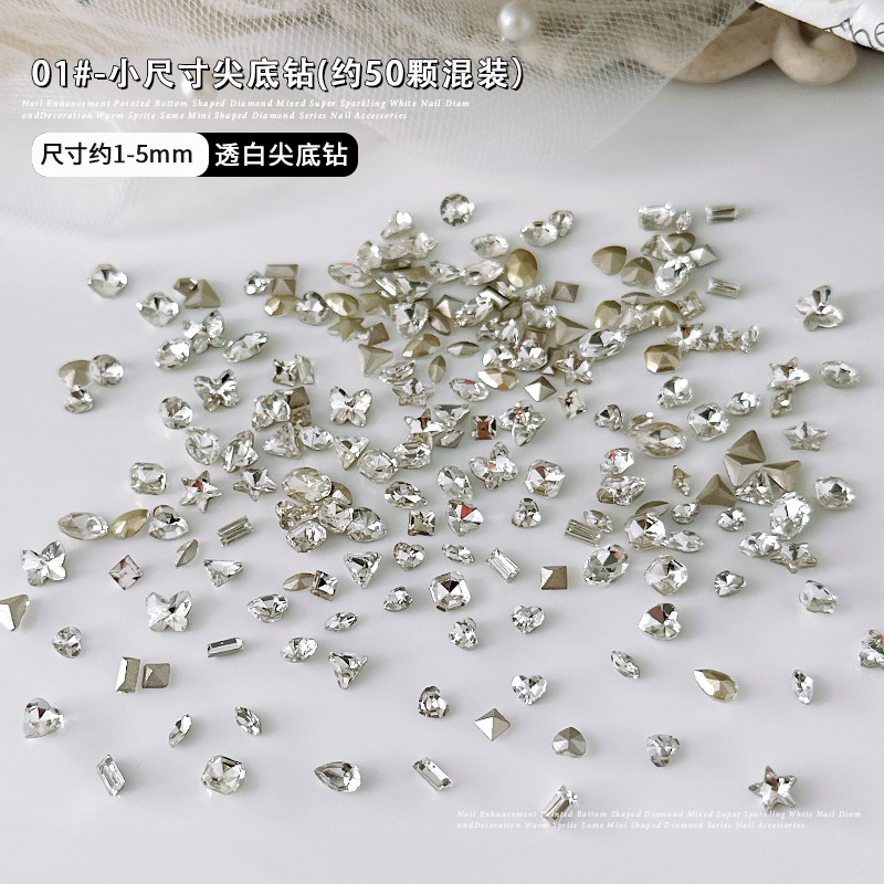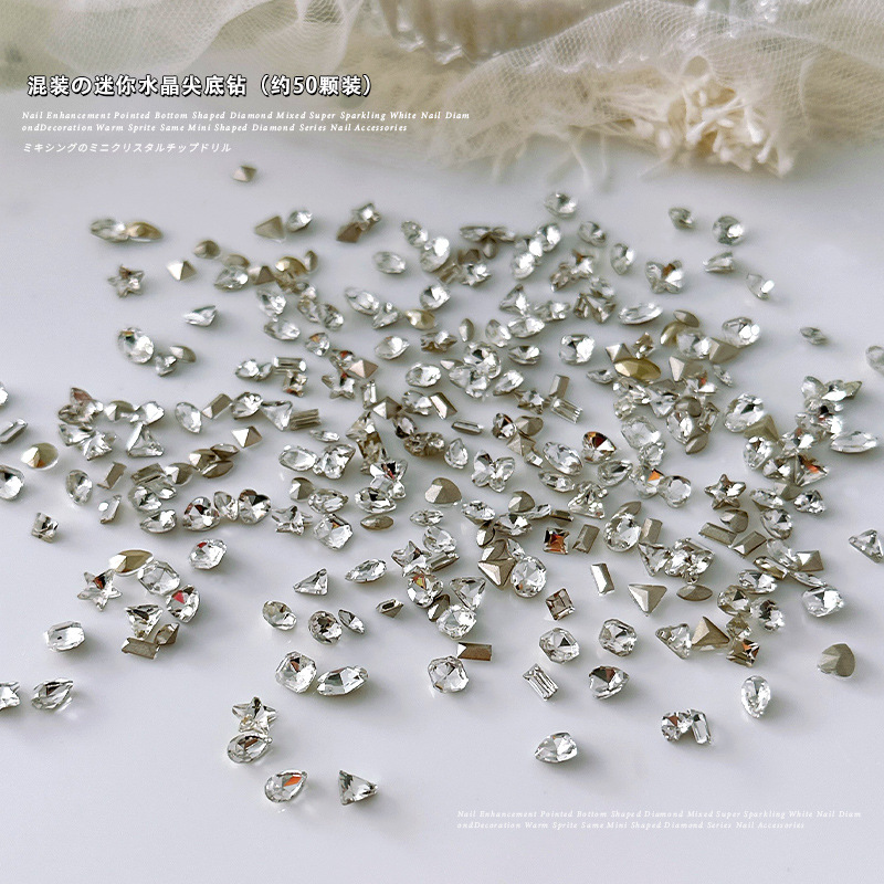 50 네일 아트 미니 밀 귀 스몰 사이즈 뾰족한 바닥 특수 모양 다이아몬드 보석 크리스탈 유리 더미 다이아몬드 나비 사랑 네일 드릴