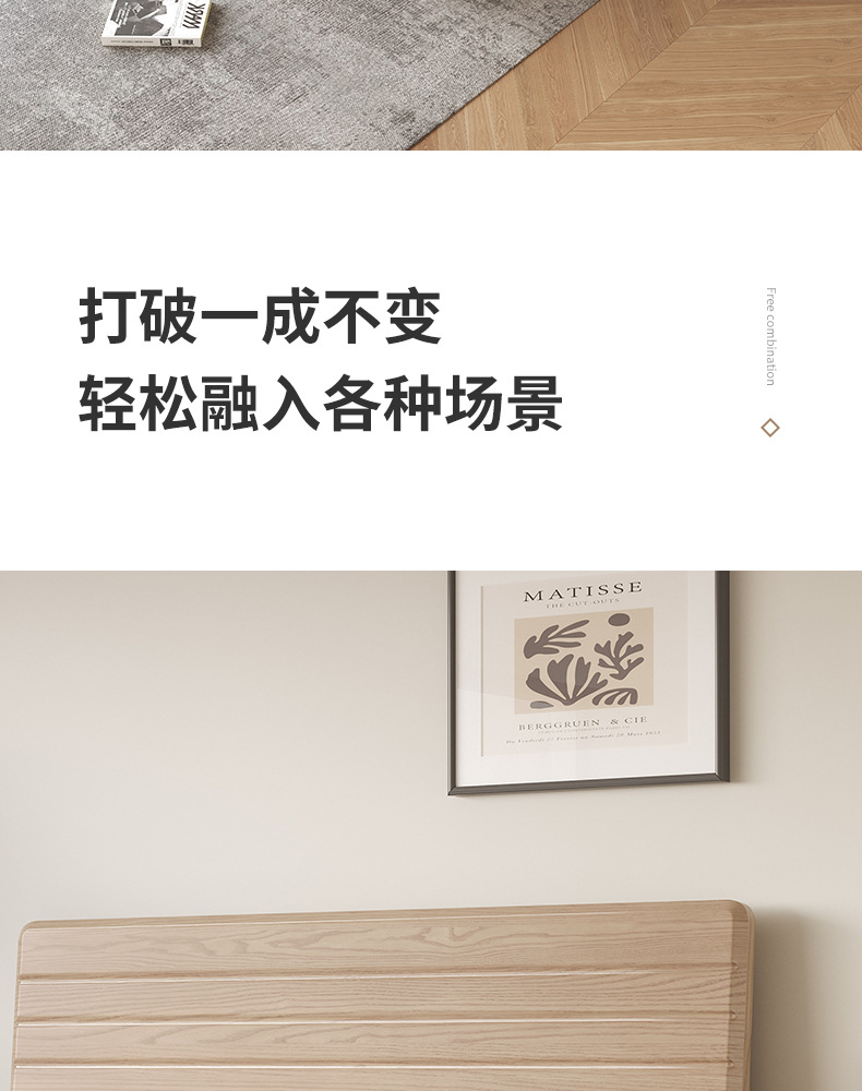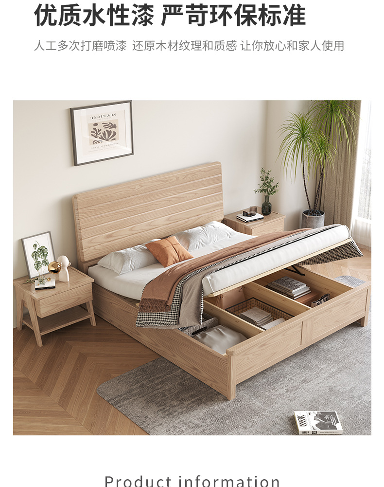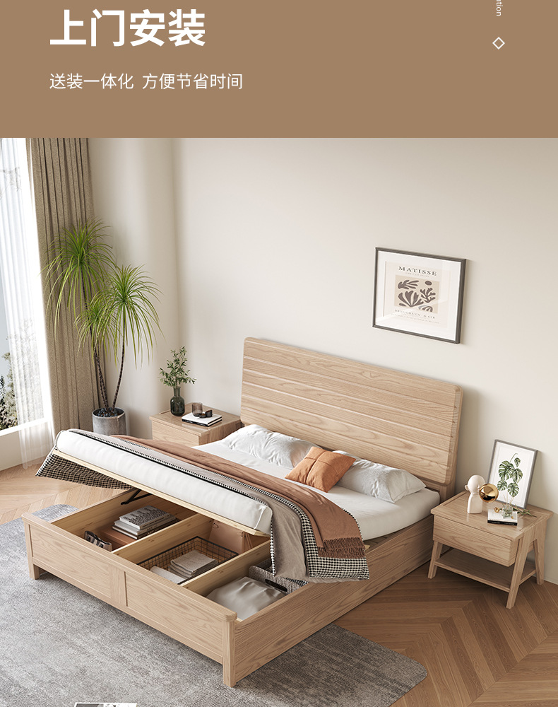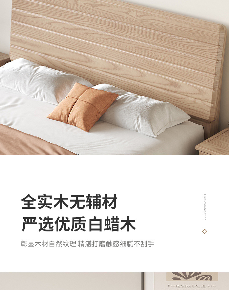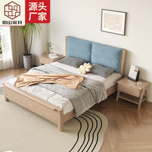 实木床白蜡木现代简约软靠床家用小户型婚床民宿酒店双人床北欧床