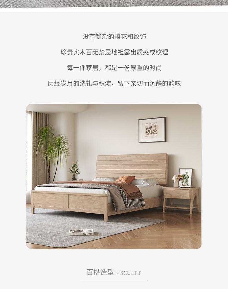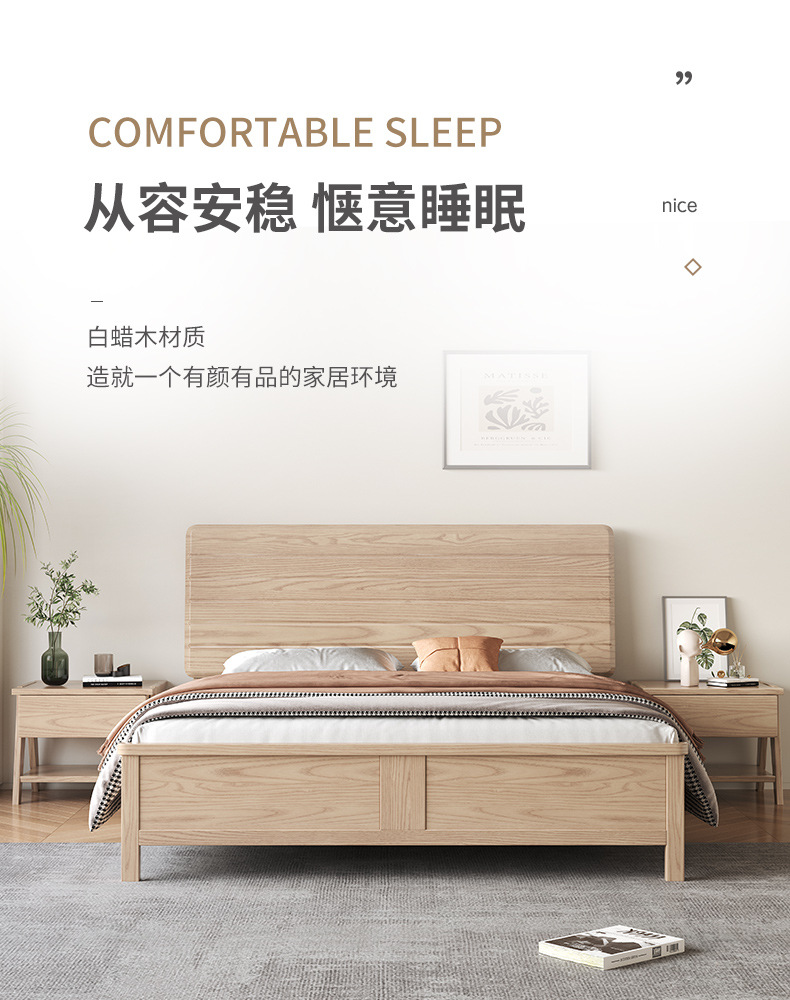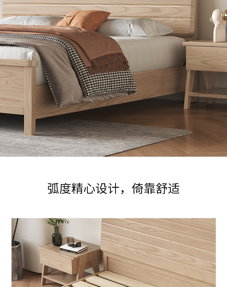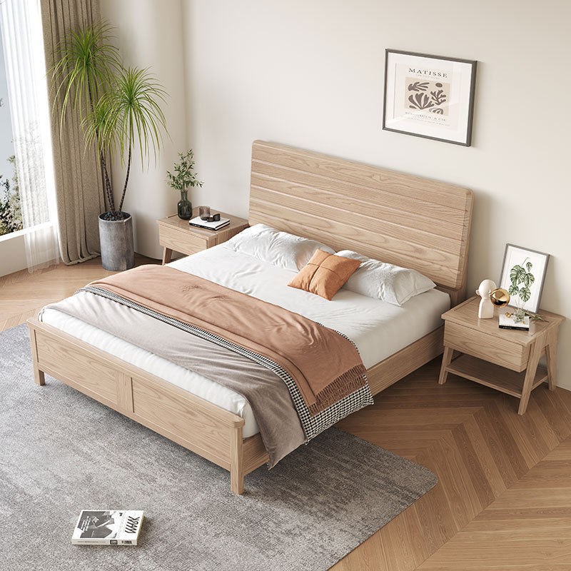 北欧白蜡木实木床双人床家用主卧现代简约小户型婚床卧室家具批发