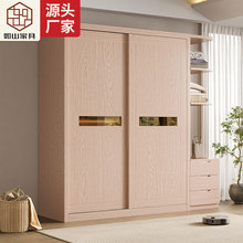 北欧简约实木衣柜轻奢卧室推拉门衣橱白蜡木组合收纳柜小户型家具