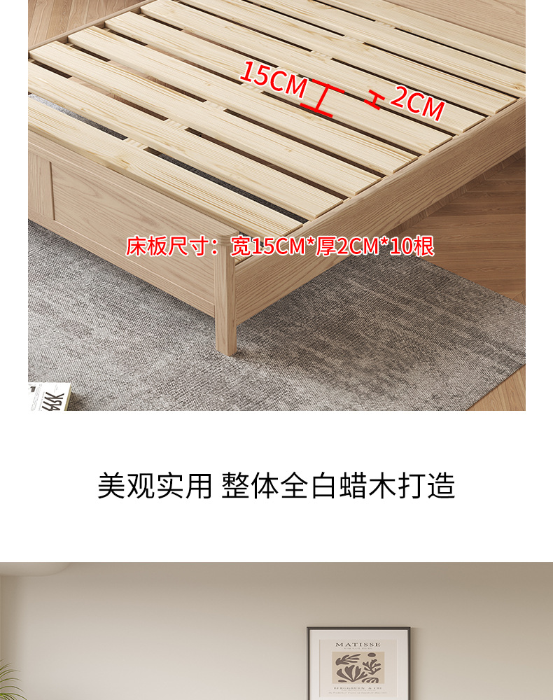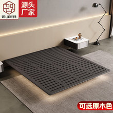 轻奢简约悬浮床白蜡木实木床家用卧室无床头双人床排骨架大床批发