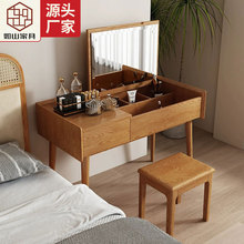 北欧实木梳妆台翻盖储物化妆台带妆凳白蜡木现代简约卧室日式家具