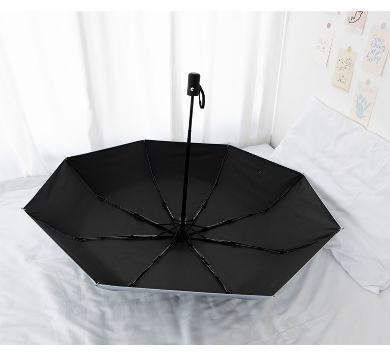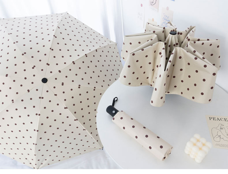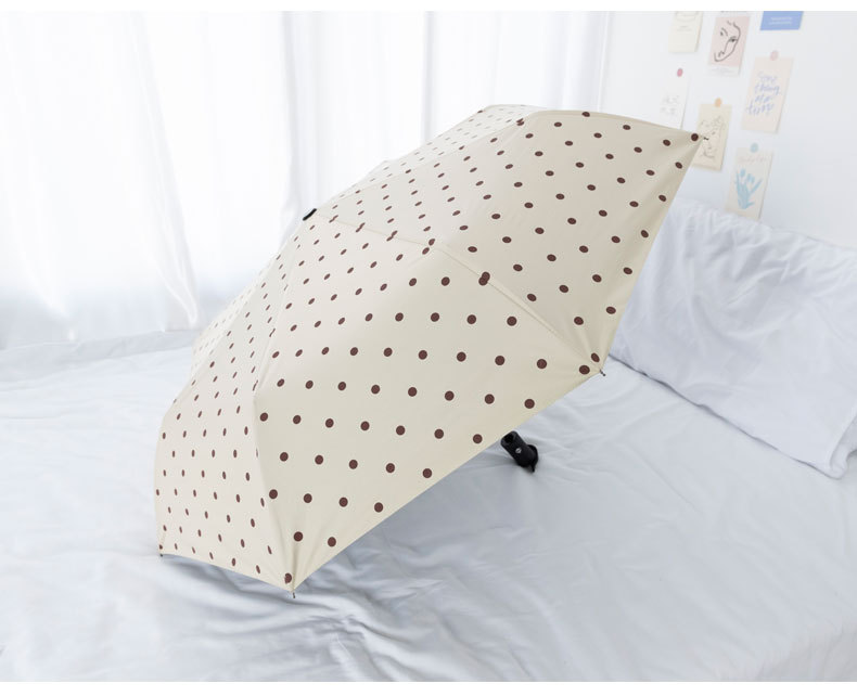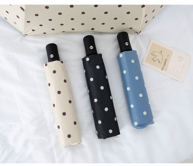 완전 자동 접는 웨이브 도트 우산 UV 보호 태양 우산 양산 검은 접착제 간단한 맑고 비 우산