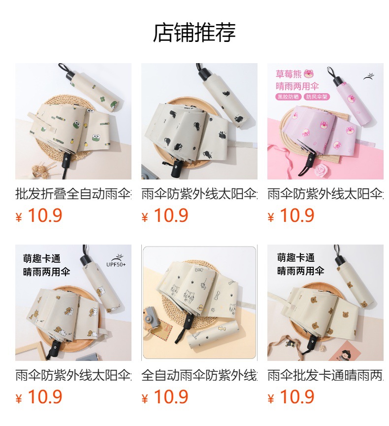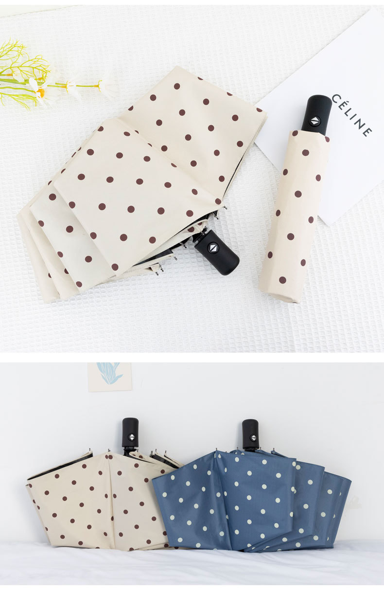 완전 자동 접는 웨이브 도트 우산 UV 보호 태양 우산 양산 검은 접착제 간단한 맑고 비 우산스토어 가기